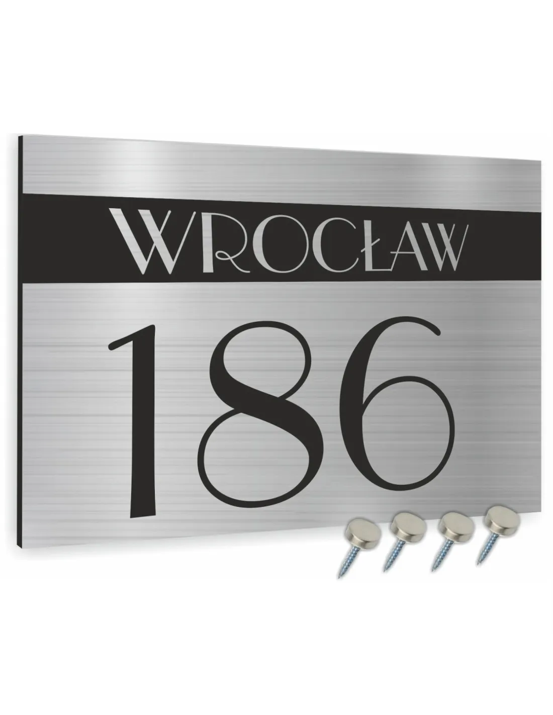 ELEGANCKA TABLICZKA ADRESOWA Z WŁASNYMI DANYMI WYKONANA Z PŁYTY DIBOND Z ELEGANCKIM I TRWAŁYM NADRUKIEM UV.