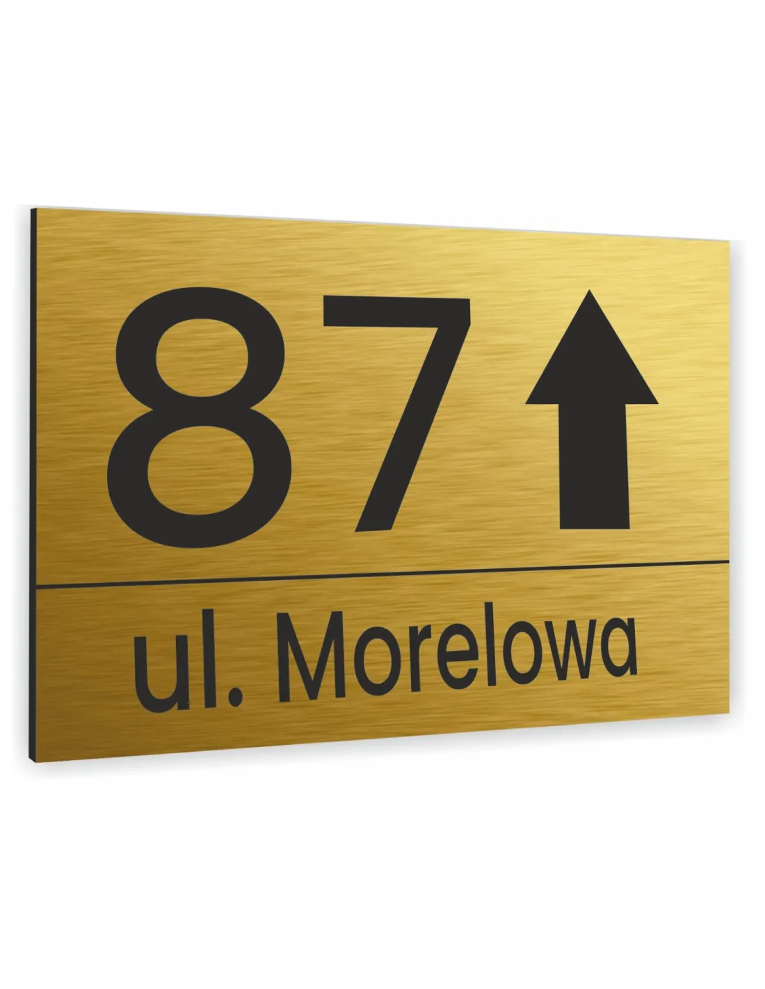 Tabliczka ADRESOWA Z TWOIM ADRESEM STRZAŁKA NUMER dibond złota 20x30 cm