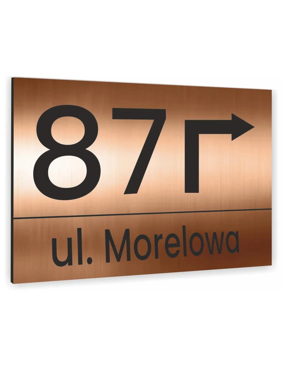 TABLICZKA ADRESOWA ALUMINIOWA ZE STRZAŁKĄ miedziana dibond 20x15 cm
