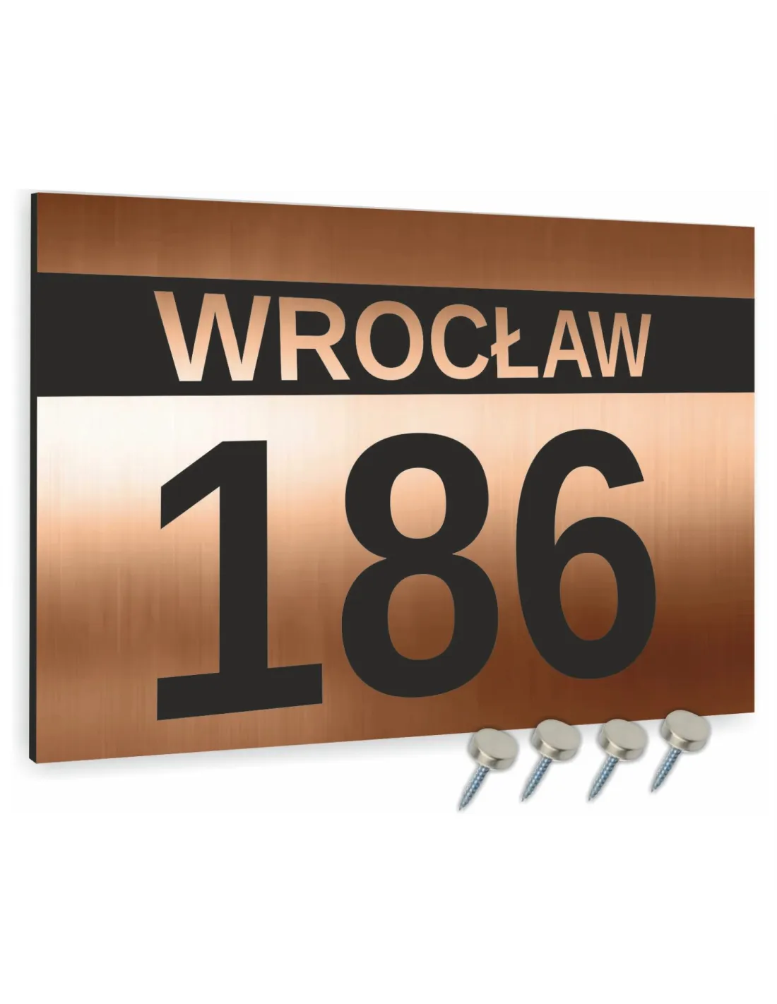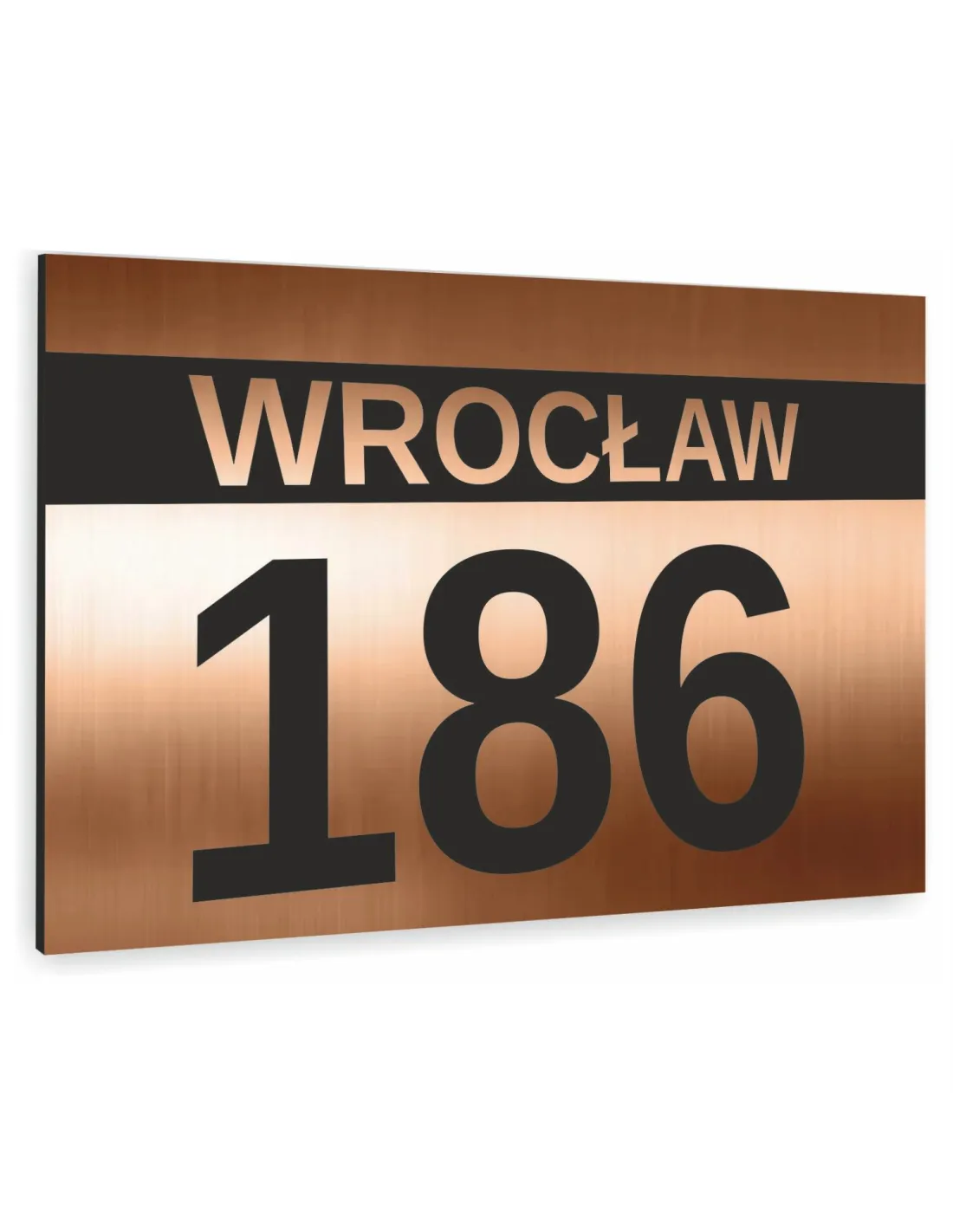 Tabliczka ADRESOWA ALUMINIOWA Tablica NUMER DOMU kolor miedziany dibond 20x15 cm