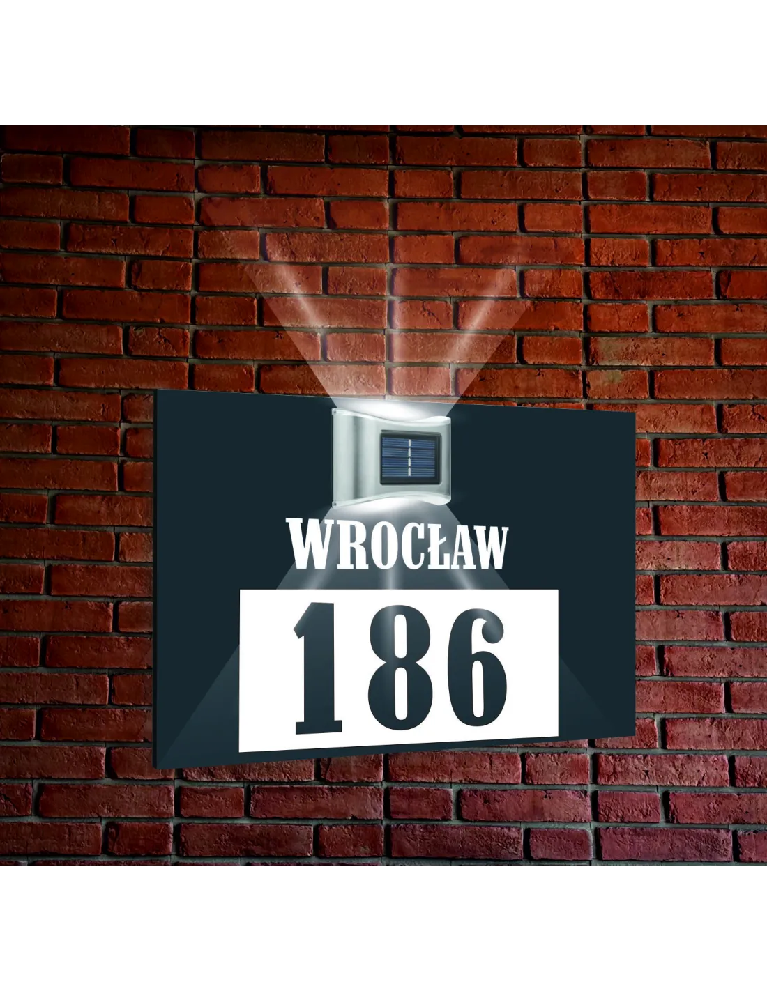 OŚWIETLANA TABLICZKA ADRESOWA Z WŁASNYMI DANYM WYKONANA Z PŁYTY DIBOND Z ELEGANCKIM I TRWAŁYM NADRUKIEM UV.