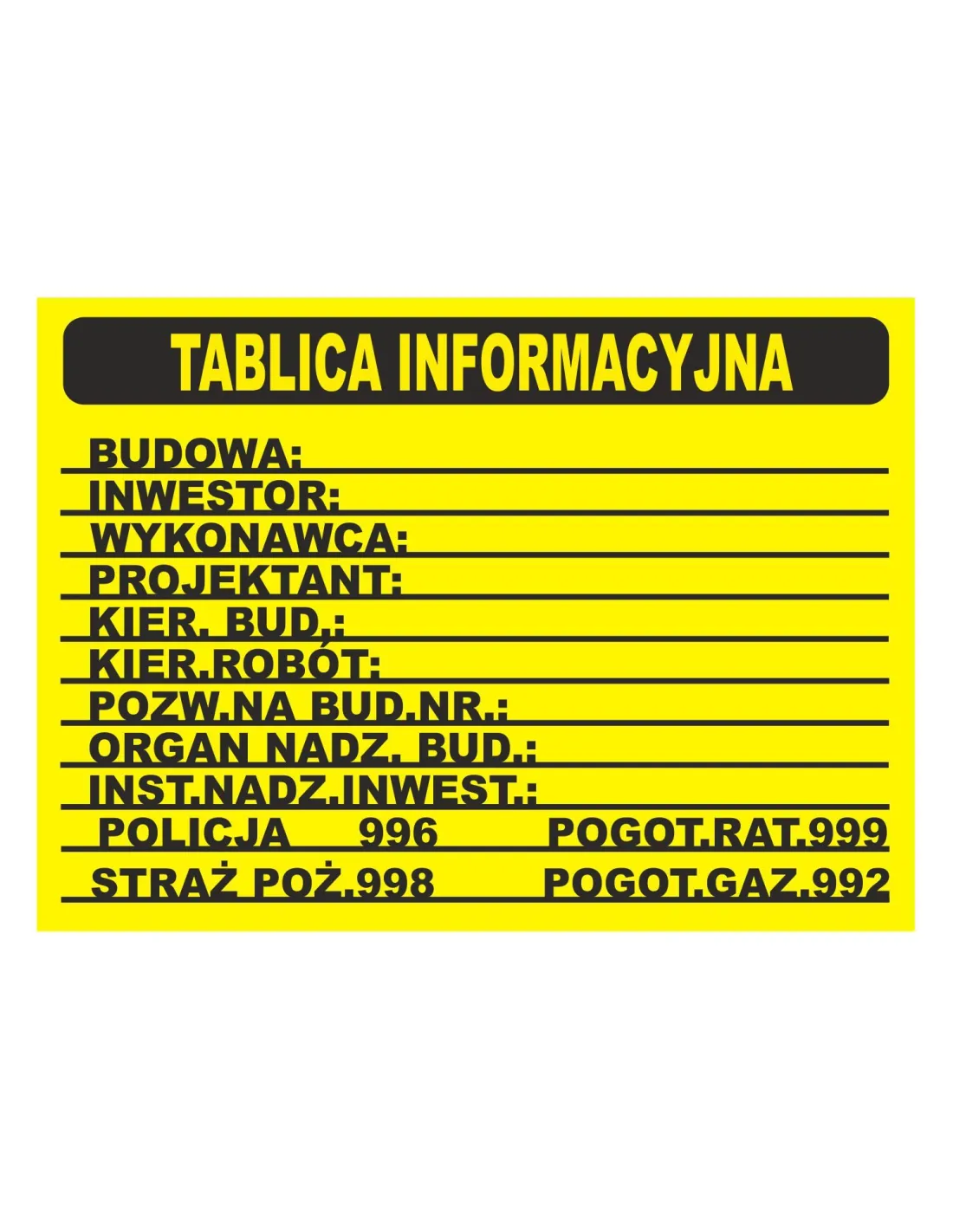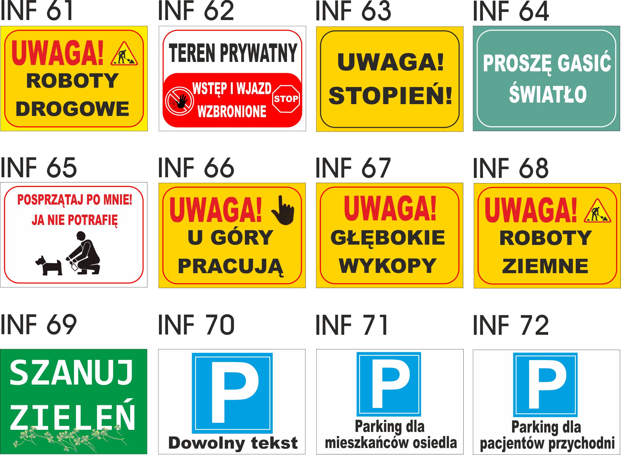 • tablice informacyjne odporne na ścieranie i warunki atmosferyczne