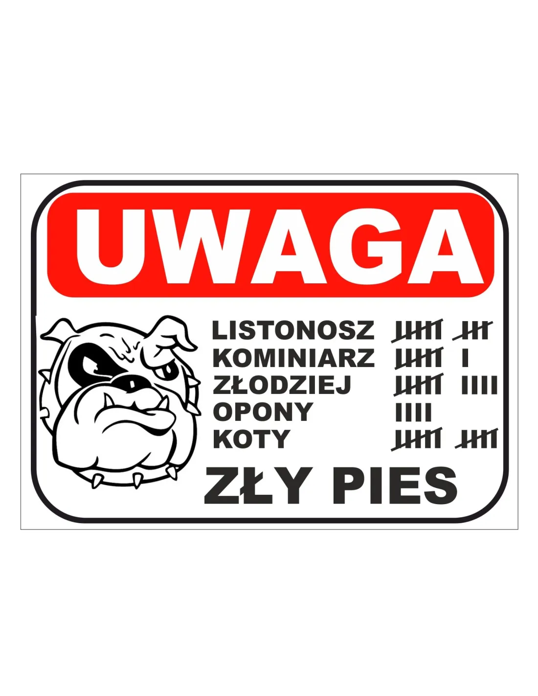 Tablica Informacyjna Uwaga Zły z Nadrukiem Pies z Projektem