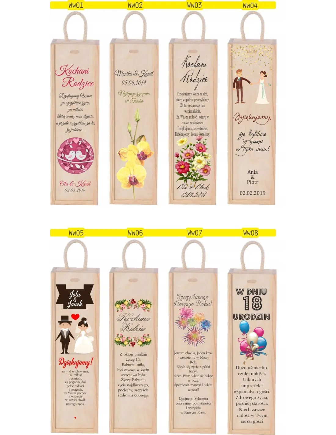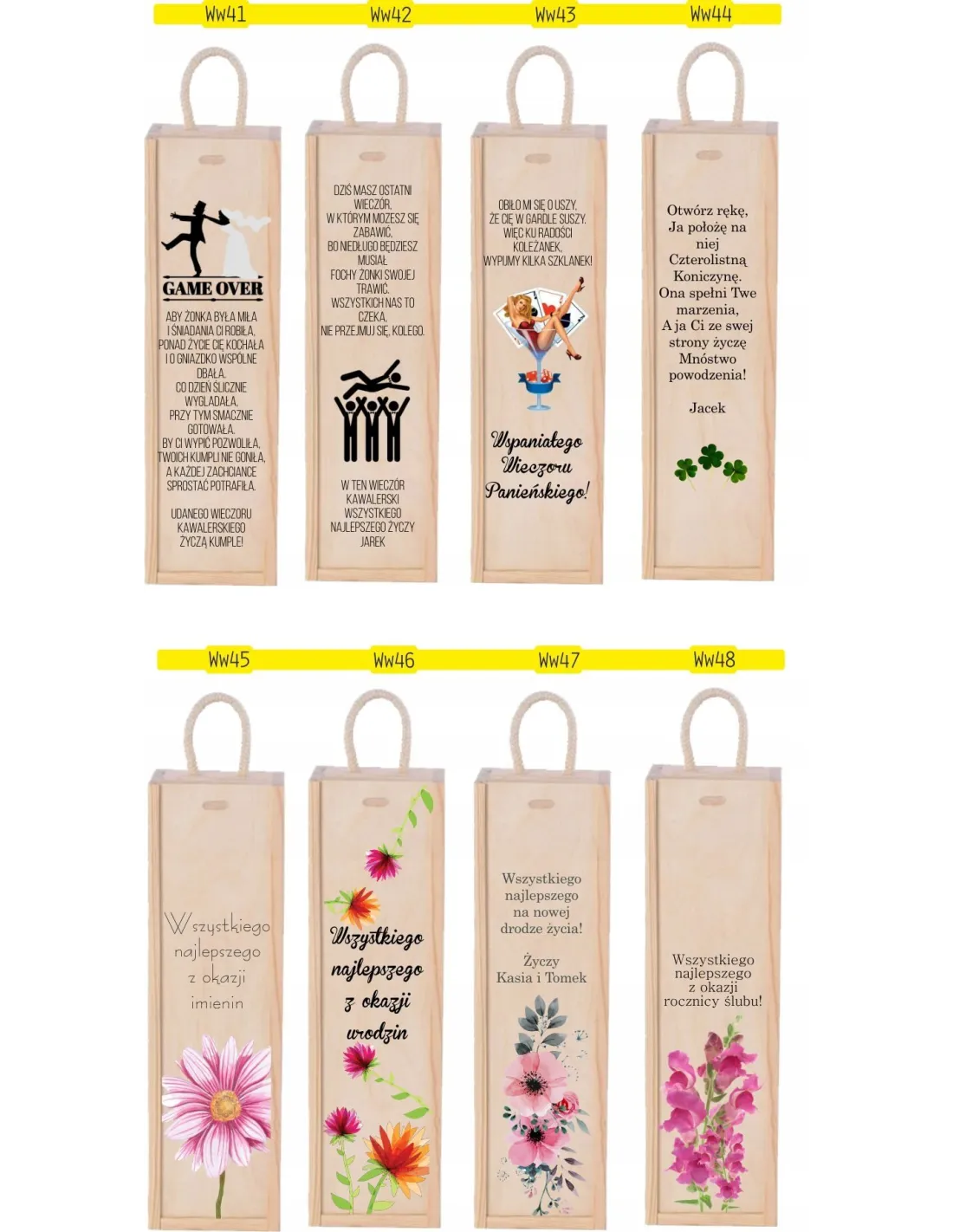 Po zakupie należy przesłać numer wzoru, który zostanie umieszczony na skrzynce oraz dane do wpisania np. imion lub nazwy okazji. W przypadku braku informacji o wzorze dokonujemy wyboru losowego.