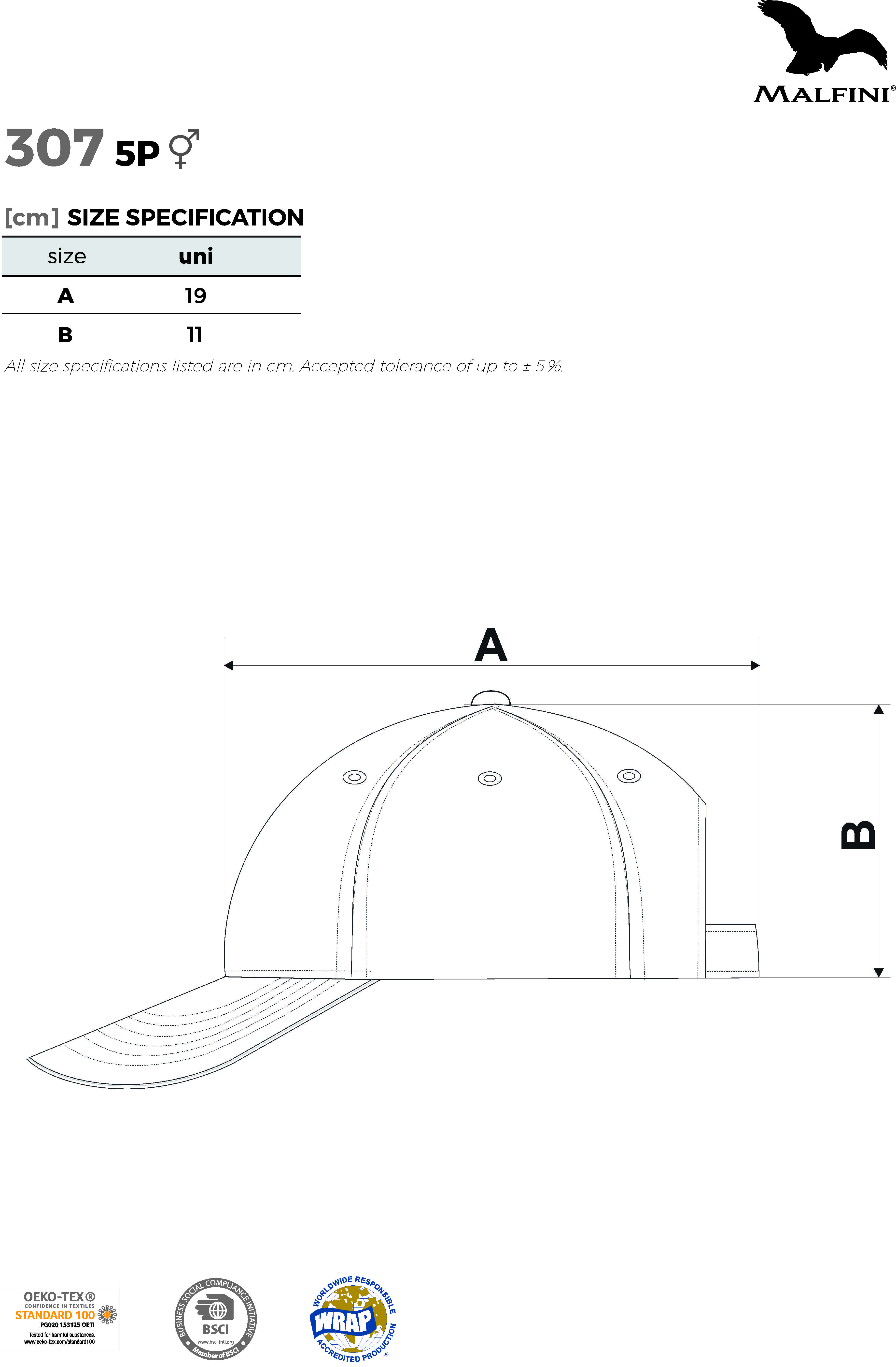 - Czapka z daszkiem, 5 paneli, 100% czesana bawełna, gramatura 340g/m²