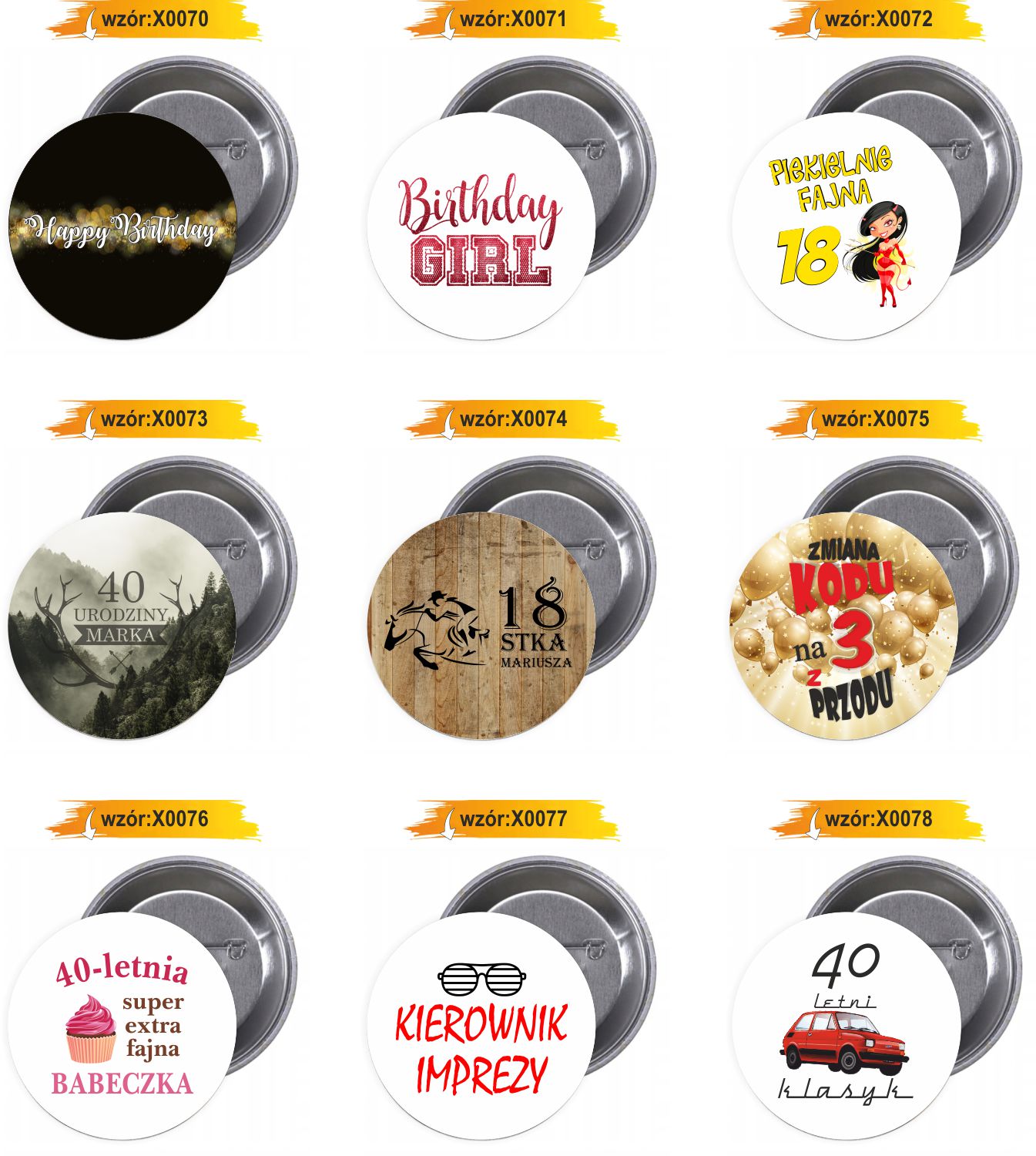 Przypinki buttony HAPPY BIRTHDAY znaczki badziki z grafiką