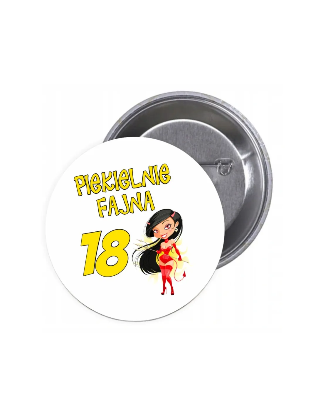 Przypinki buttony PIEKIELNIE FAJNA 18 znaczki badziki z grafiką