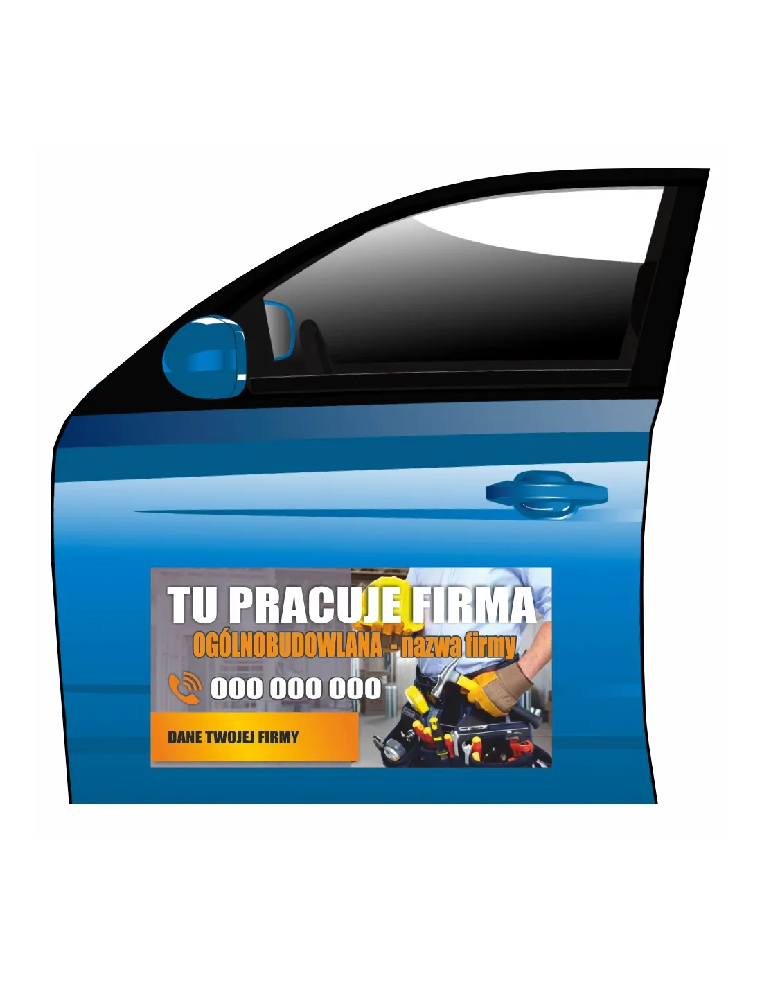 Magnes na samochód reklama magnetyczna tu pracuje firma ogólnobudowlana - nazwa firmy