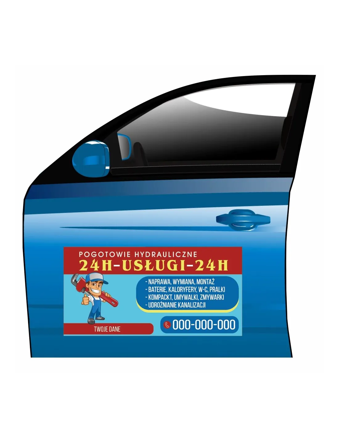 Magnes na samochód reklama magnetyczna pogotowie hydrauliczne