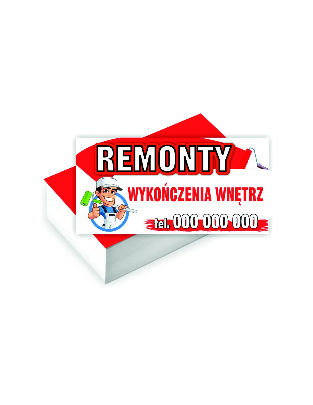 Wizytówki firmowe Foliowane GOTOWY PROJEKT 100 szt. REMONTY WYKOŃCZENIA WNĘTRZ