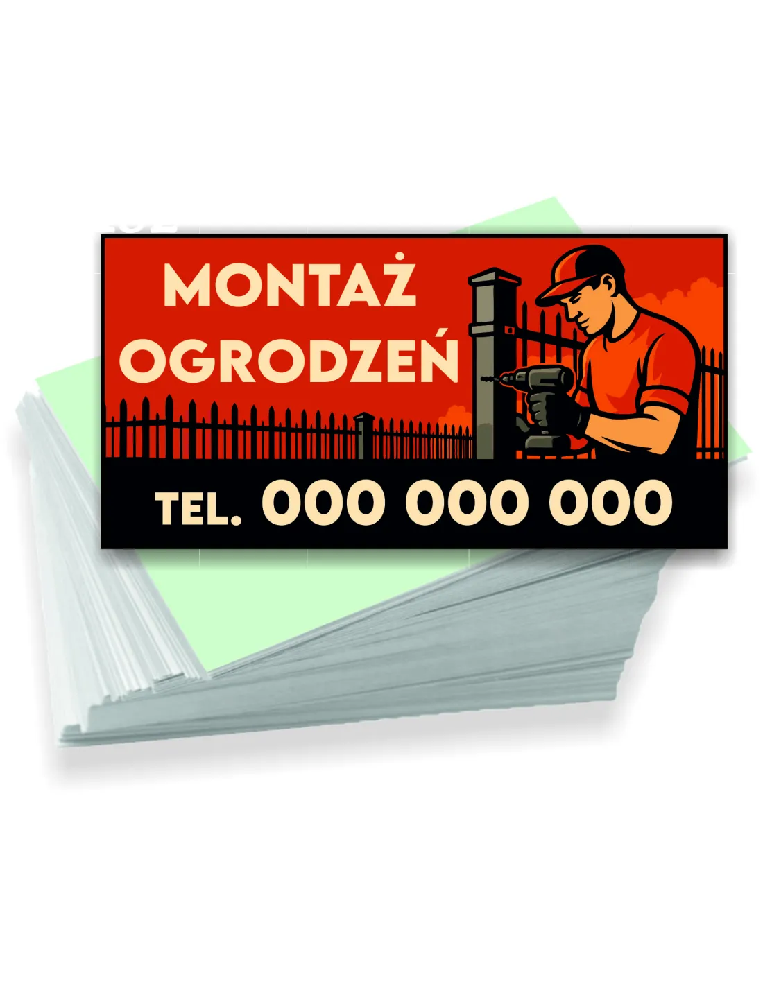 Wizytówki firmowe reklamowe 100szt różne wzory montaż ogrodzeń