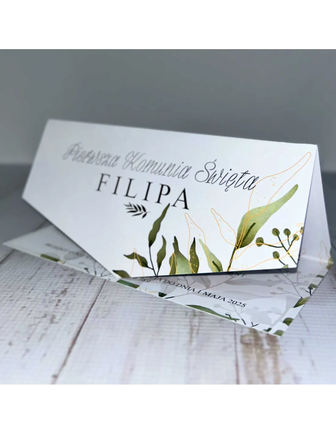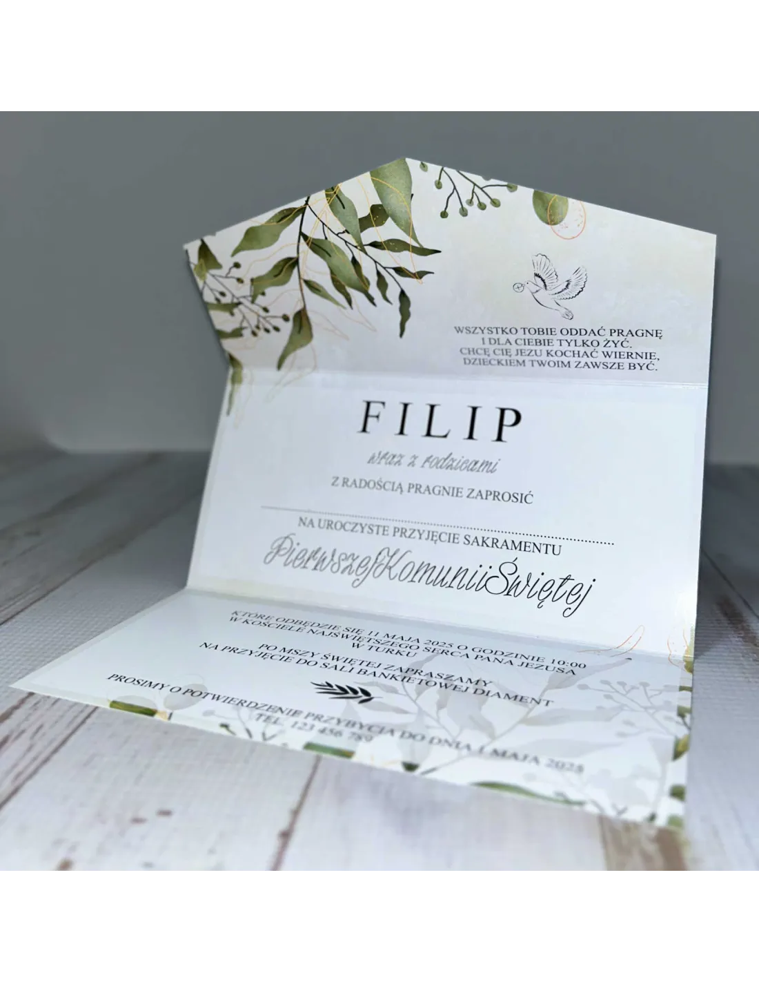 Eleganckie Zaproszenie na pierwszą komunię świętą zaproszenia komunijne personalizacjaliście boho PROJEKT GRATIS