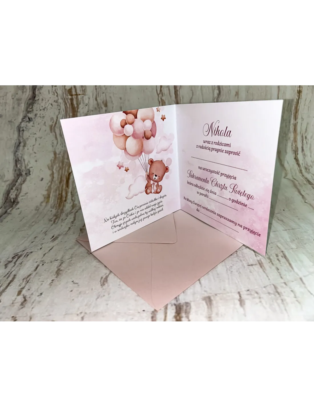 Zaproszenie na Chrzest Chrzciny Różowe z Misiem + Pojekt