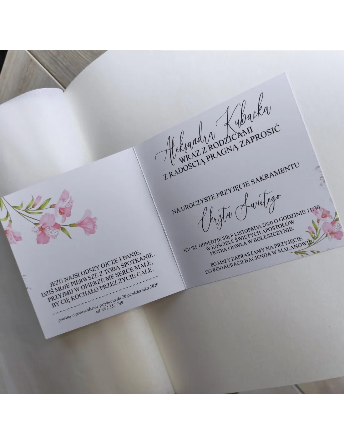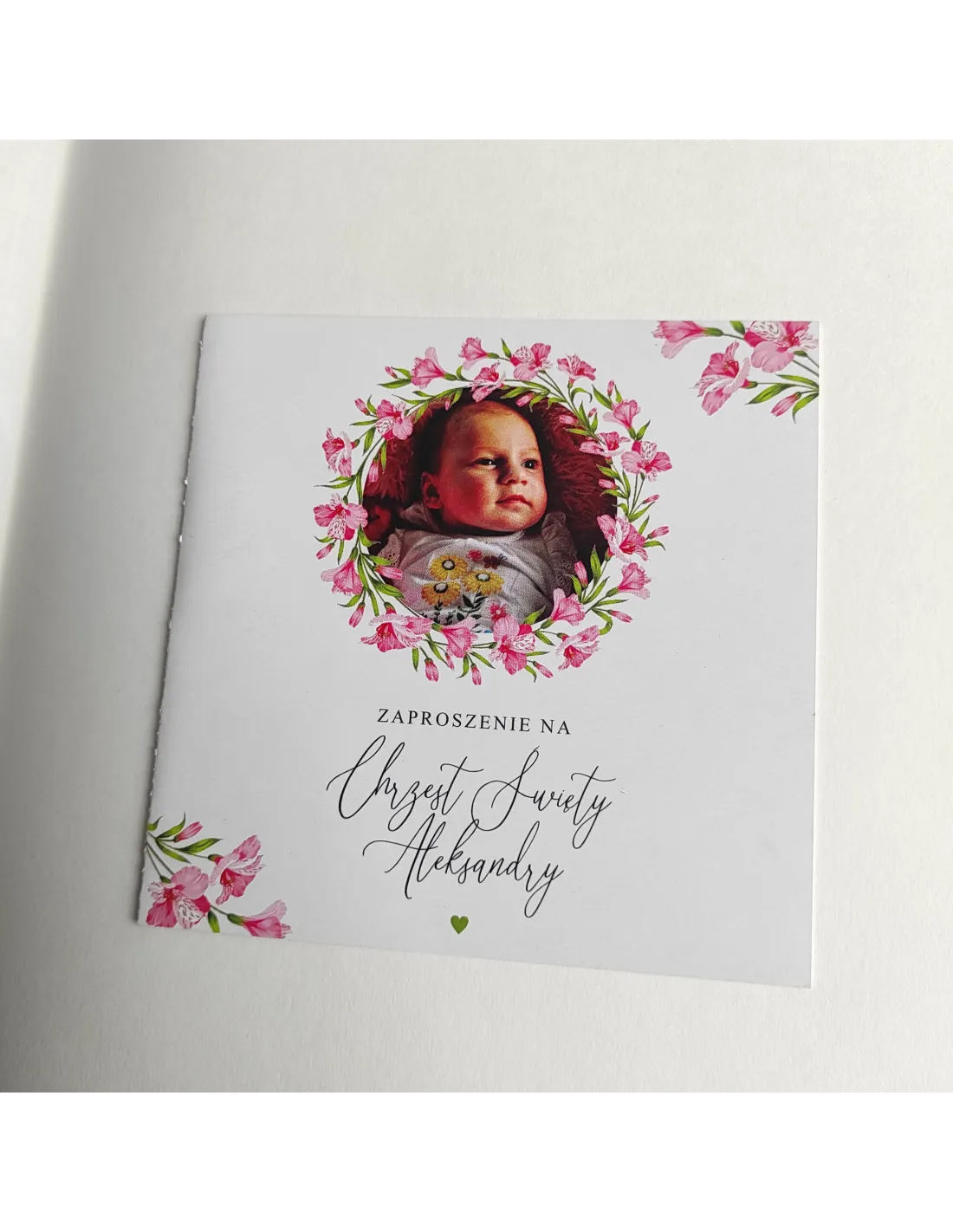 Personalizowane zaproszenie na chrzciny ze zdjęciem motyw kwiatowy PROJEKT GRATIS