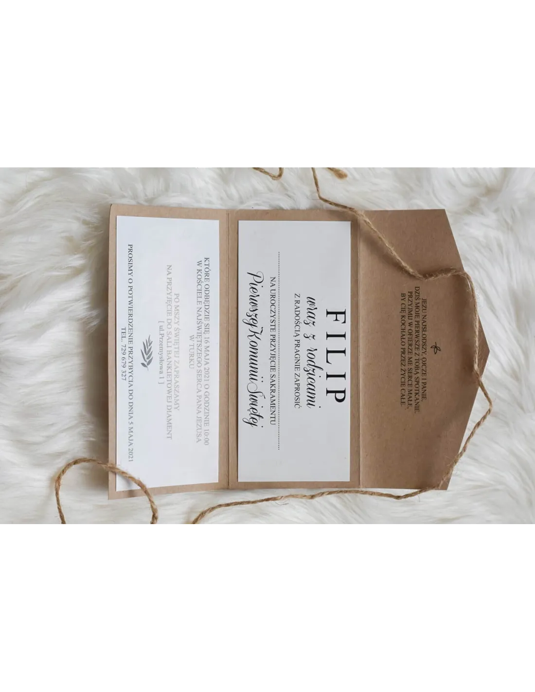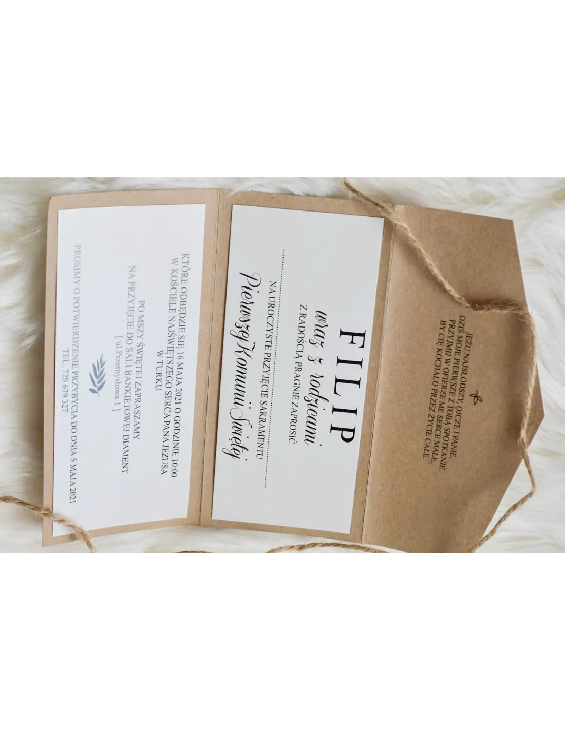 ZAPROSZENIA ślubne składane z papieru EKO Kraft - wstążka sznurek dekoracyjny wklejka wkładka