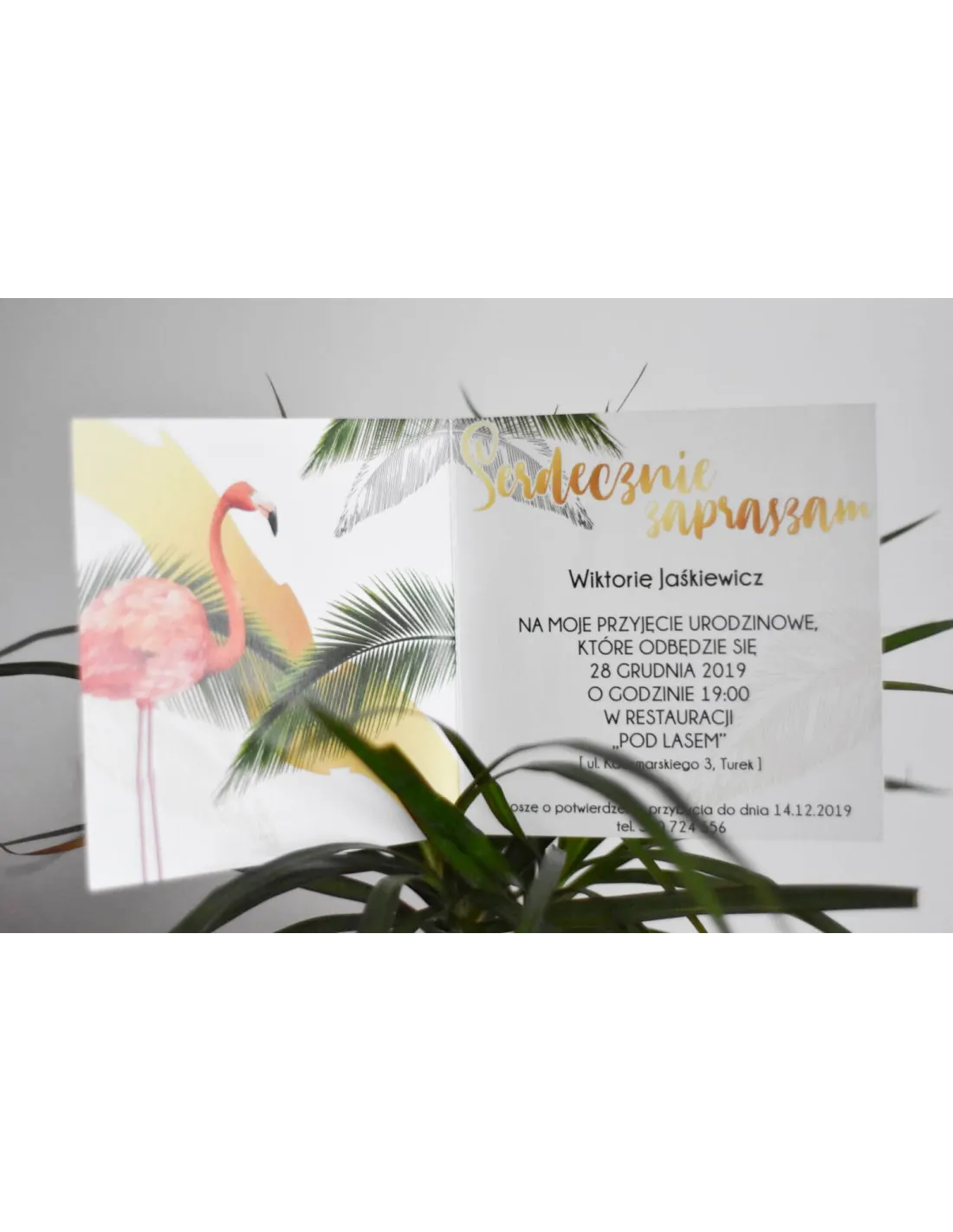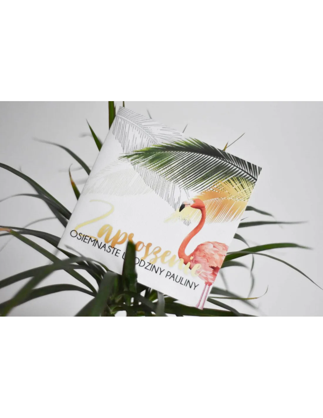 ZAPROSZENIA urodzinowe z dowolnym tekstem i grafiką- flamingi