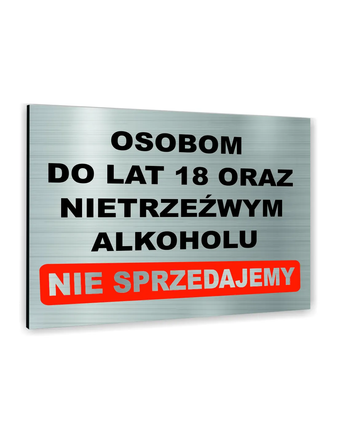Znak Tablica informacyjna Dibond - OSOBOM DO LAT 18 ORAZ NIETRZEŹWYM ALKOHOLU NIE SPRZEDAJEMY