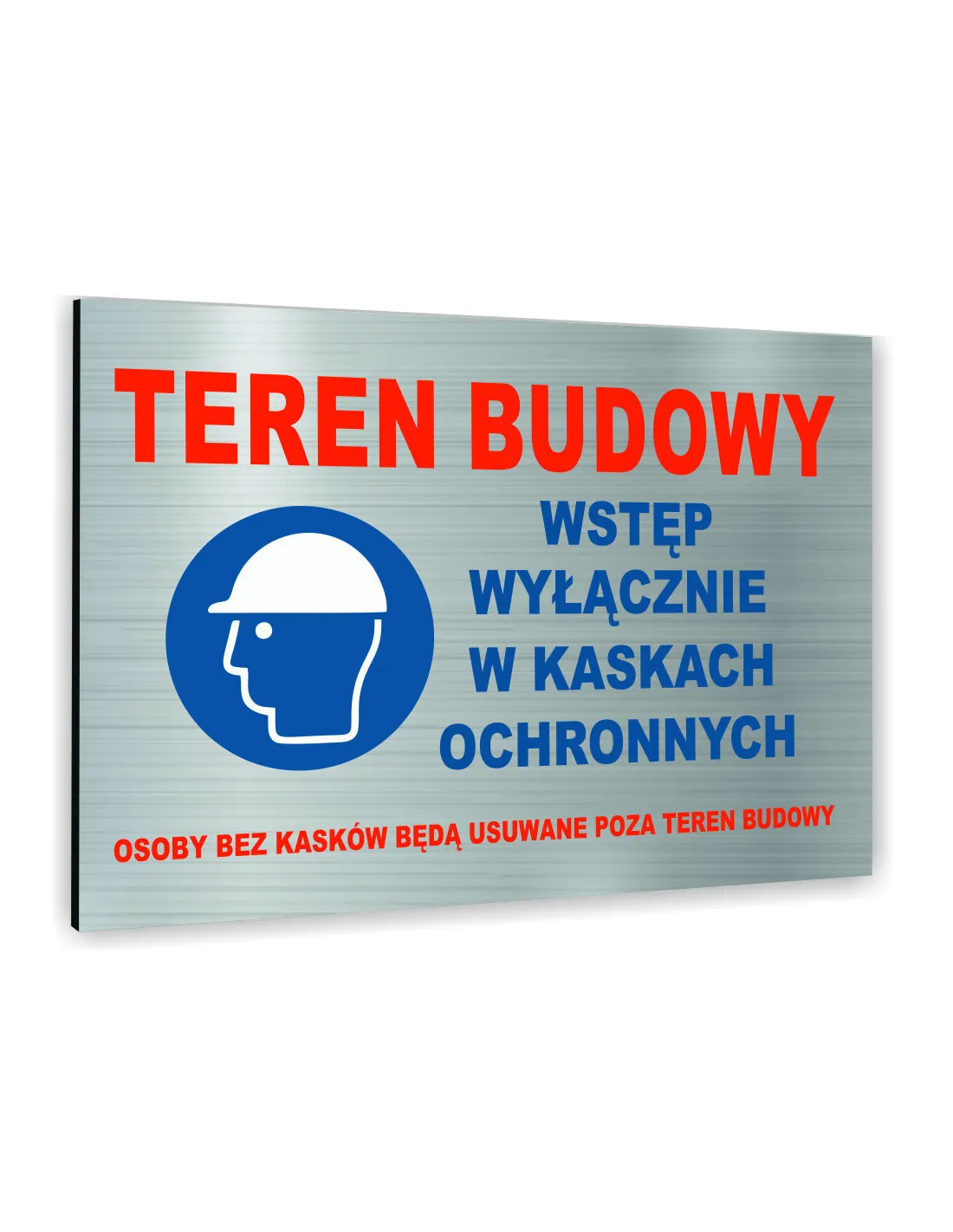 Znak Tablica informacyjna Dibond - TEREN BUDOWY WSTĘP WYŁACZNIE W KASKACH OCHRONNYCH