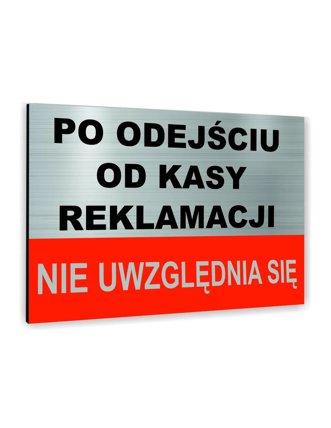 Znak Tablica informacyjna Dibond - PO ODEJŚCIU OD KASY REKLAMACJI NIE UWZGLĘDNIA SIĘ