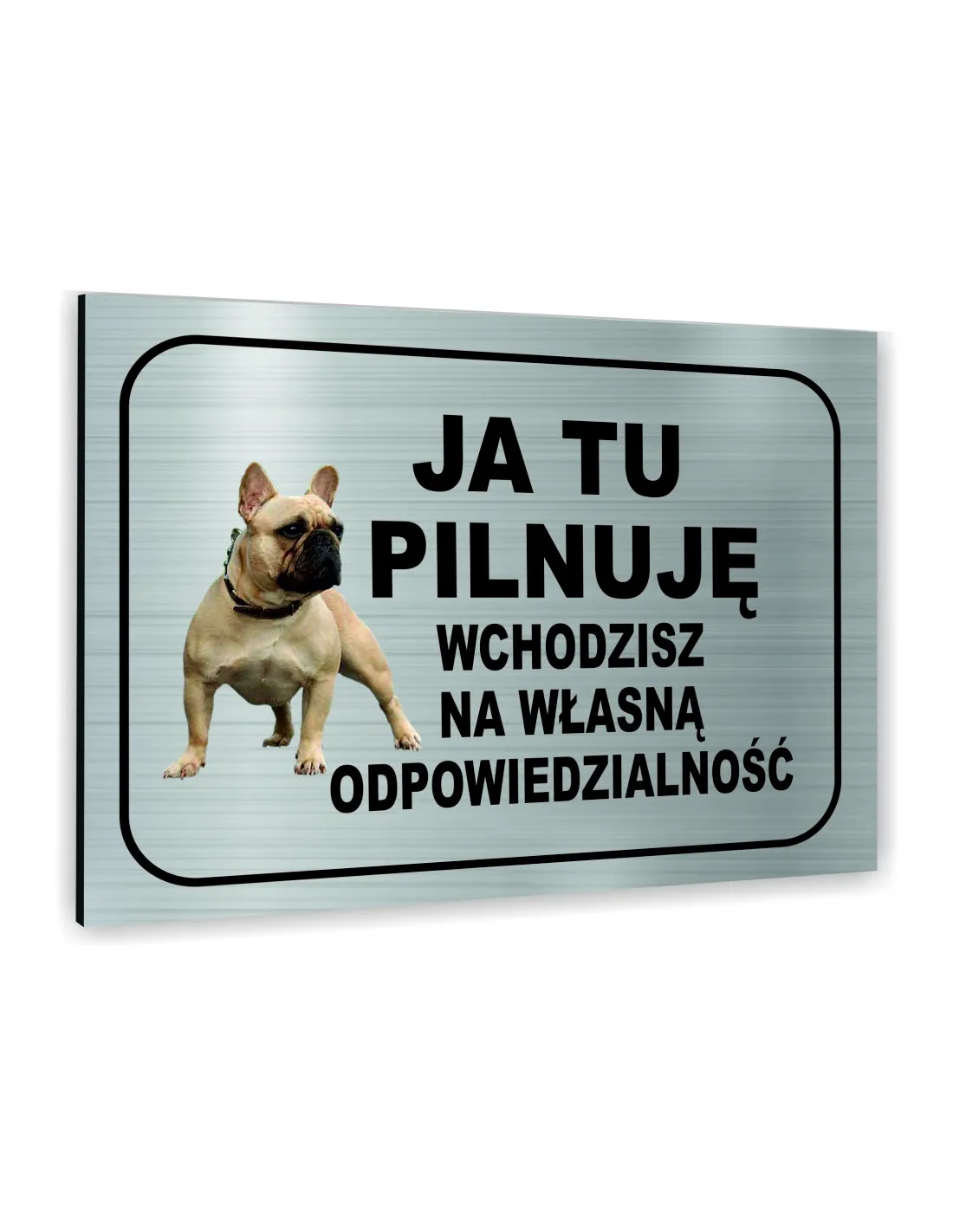 Znak Tablica informacyjna Dibond - JA TU PILNUJĘ WCHODZISZ NA WŁASNĄ ODPOWIEDZIALNOŚĆ