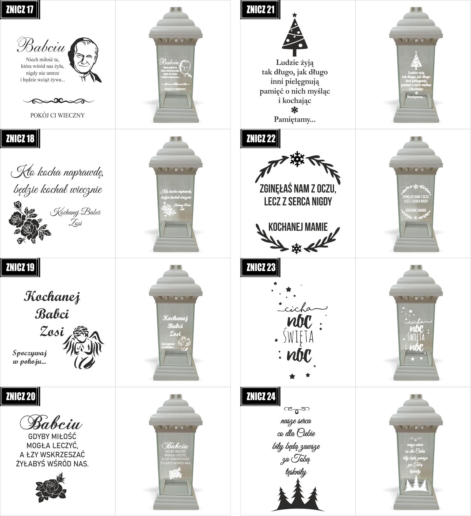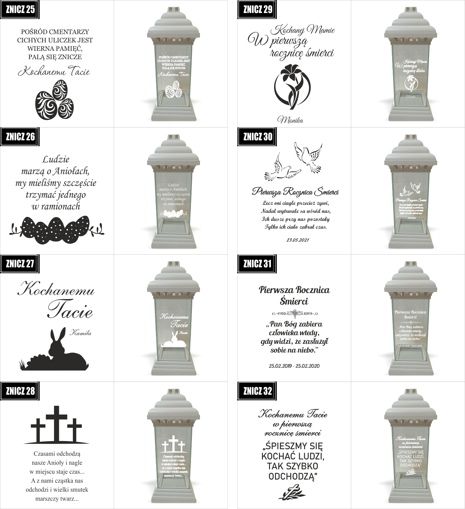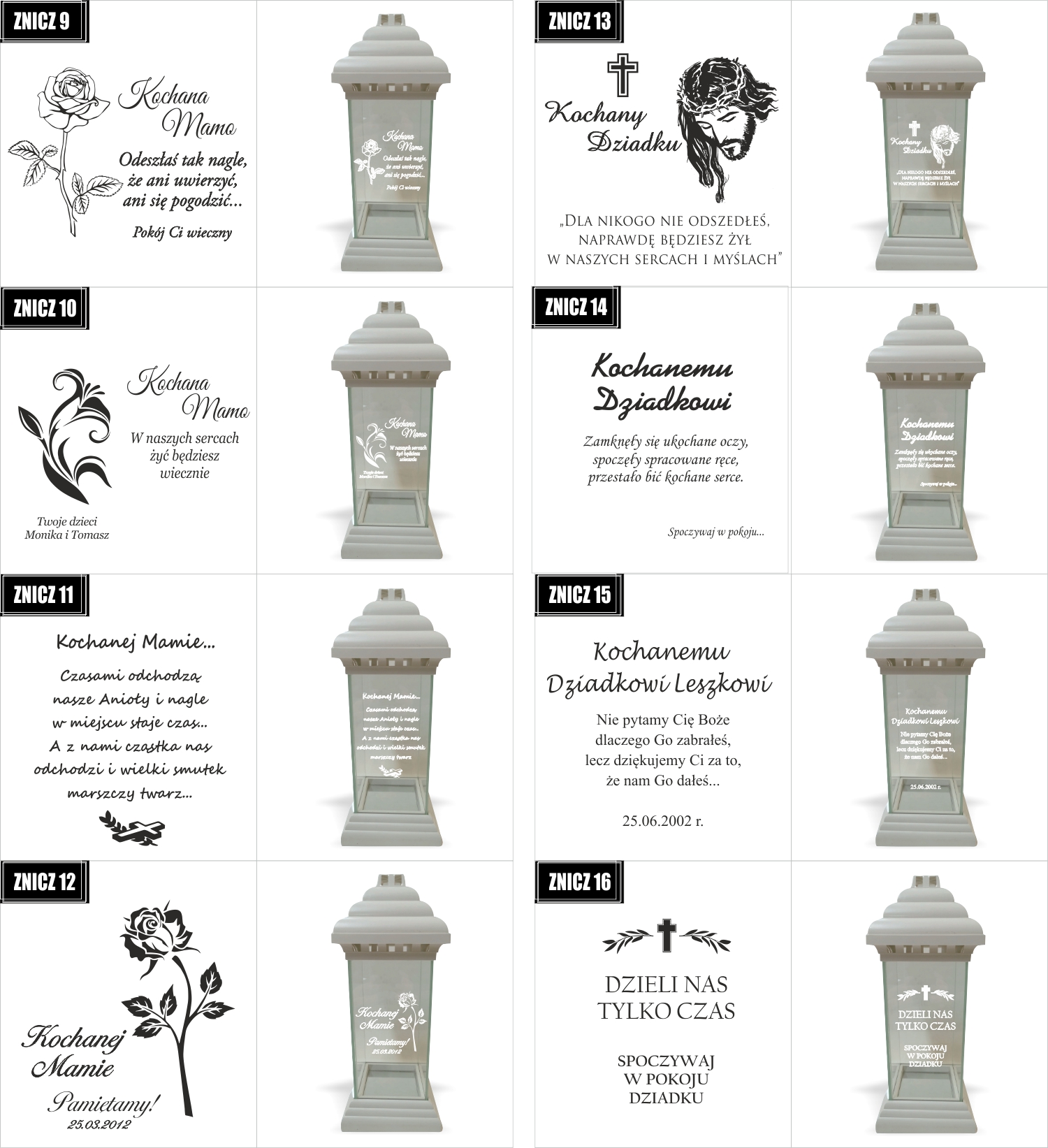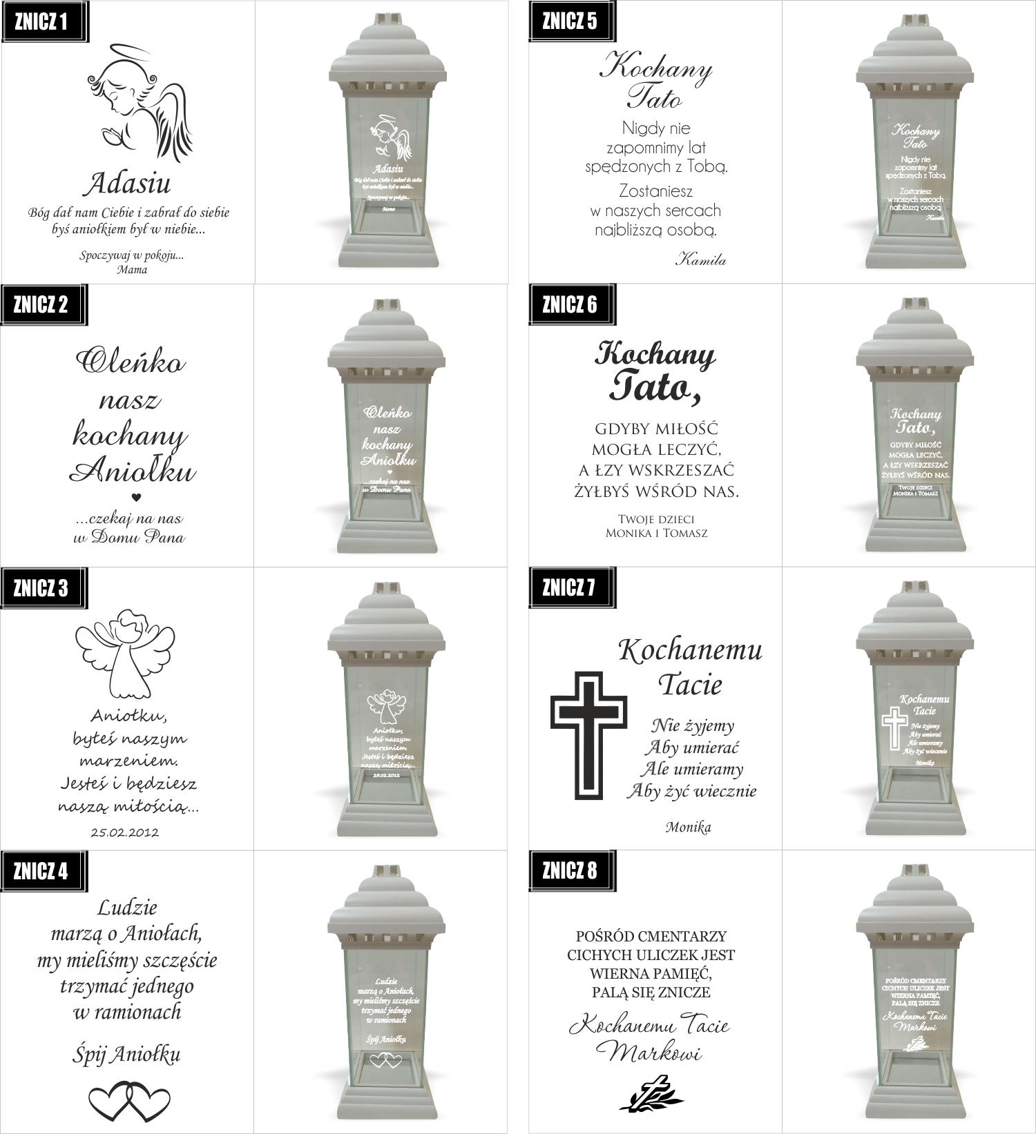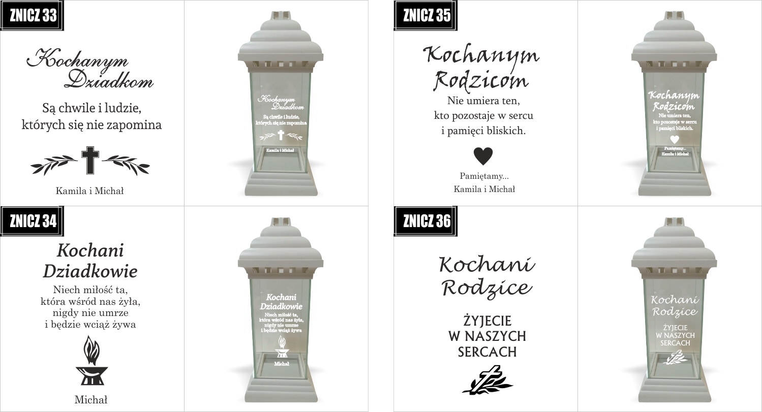 Dostępne wzory graweru na zniczach: