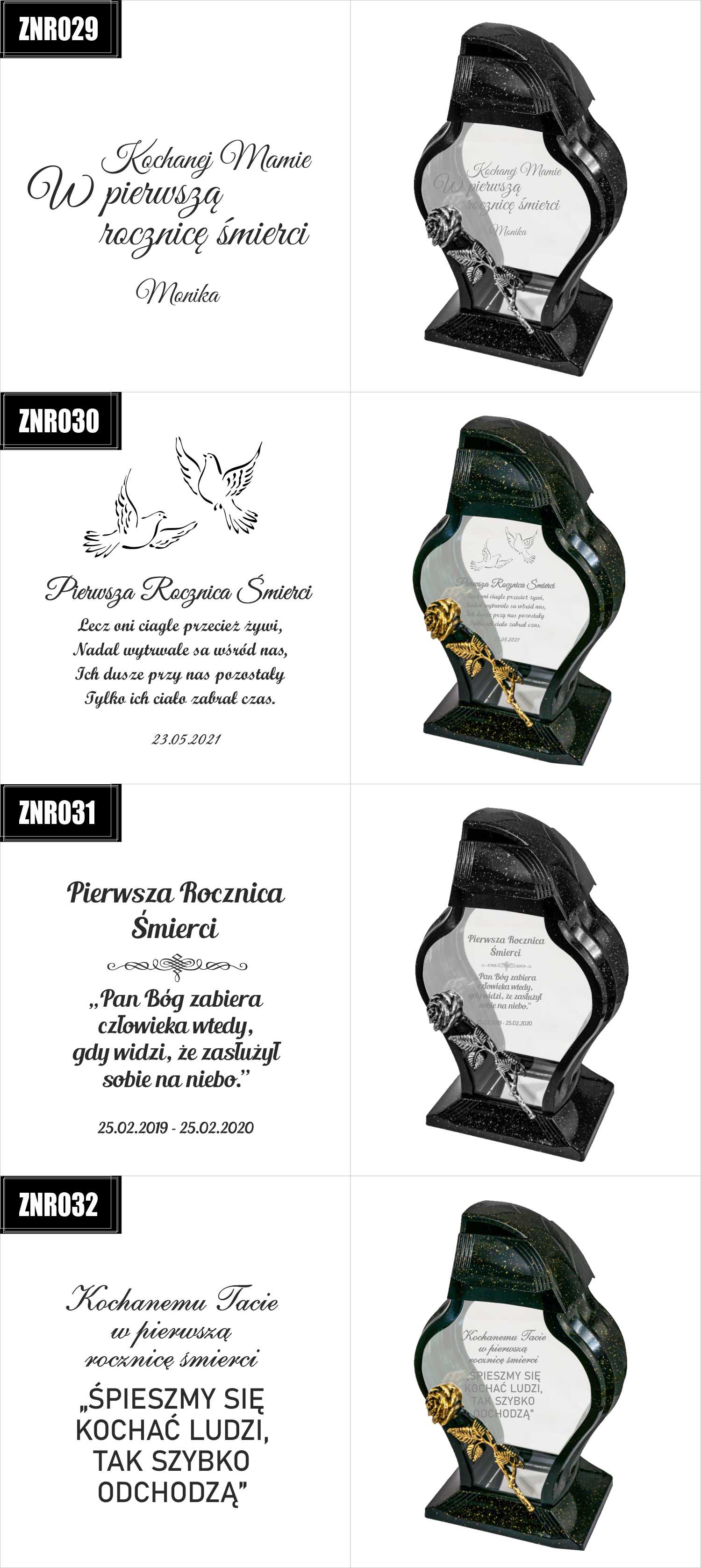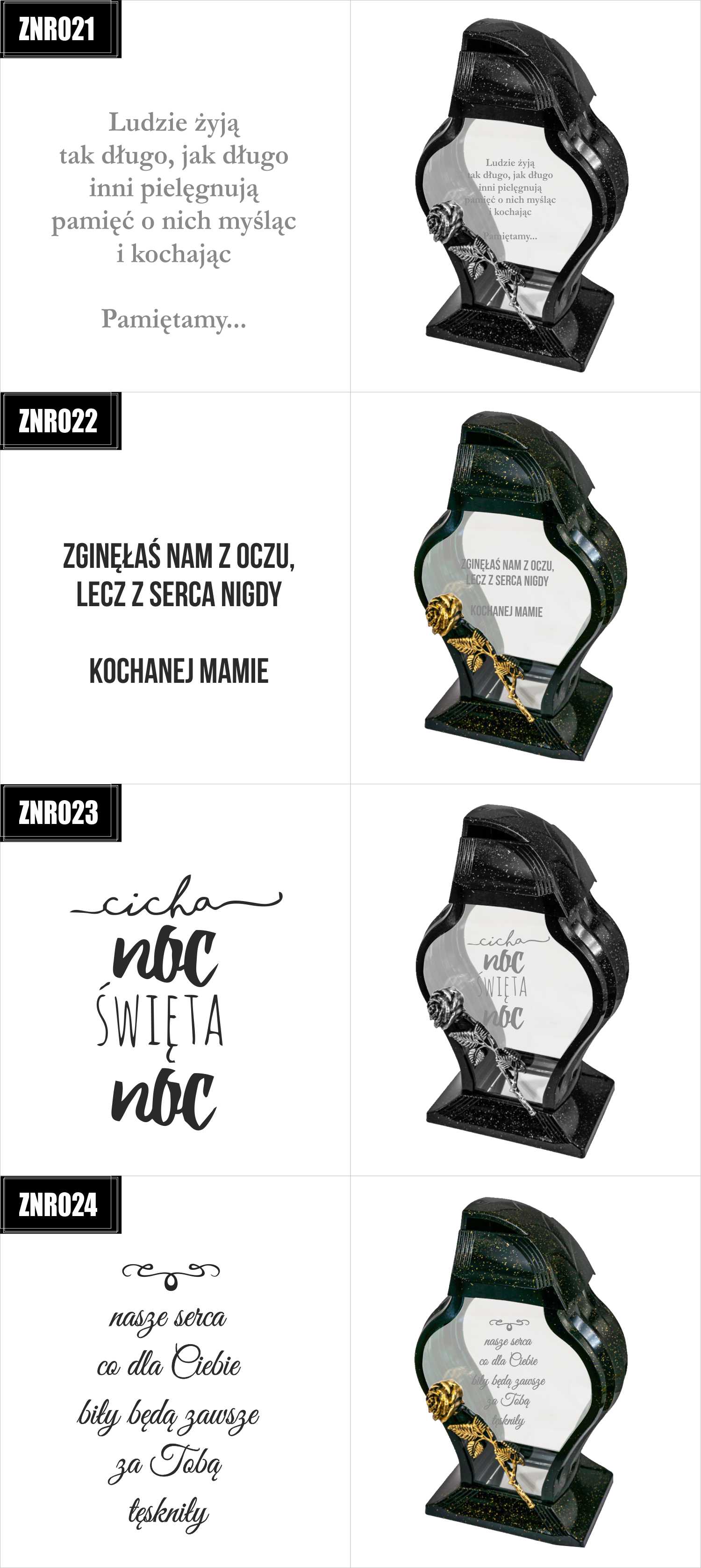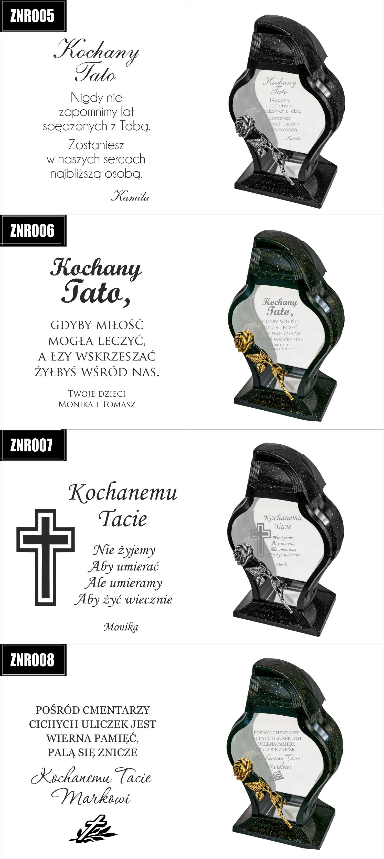 Dostępne wzory graweru na zniczach: