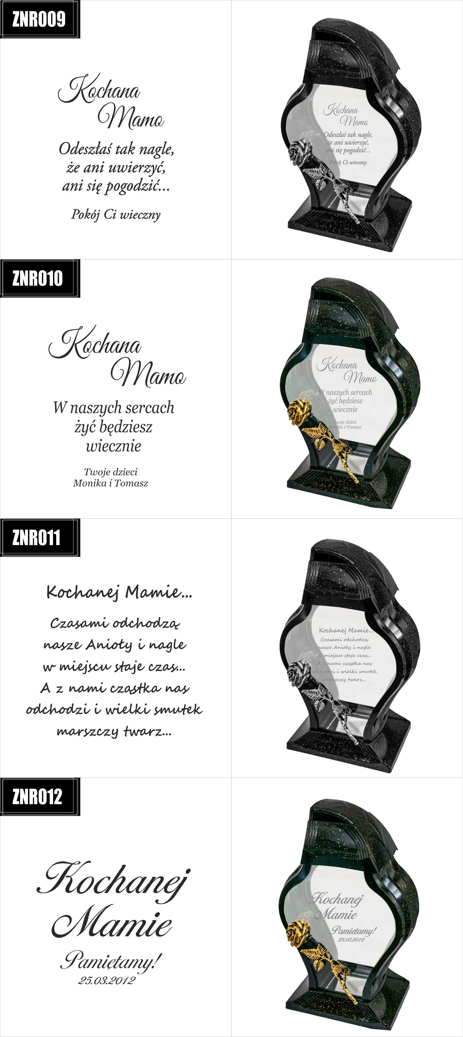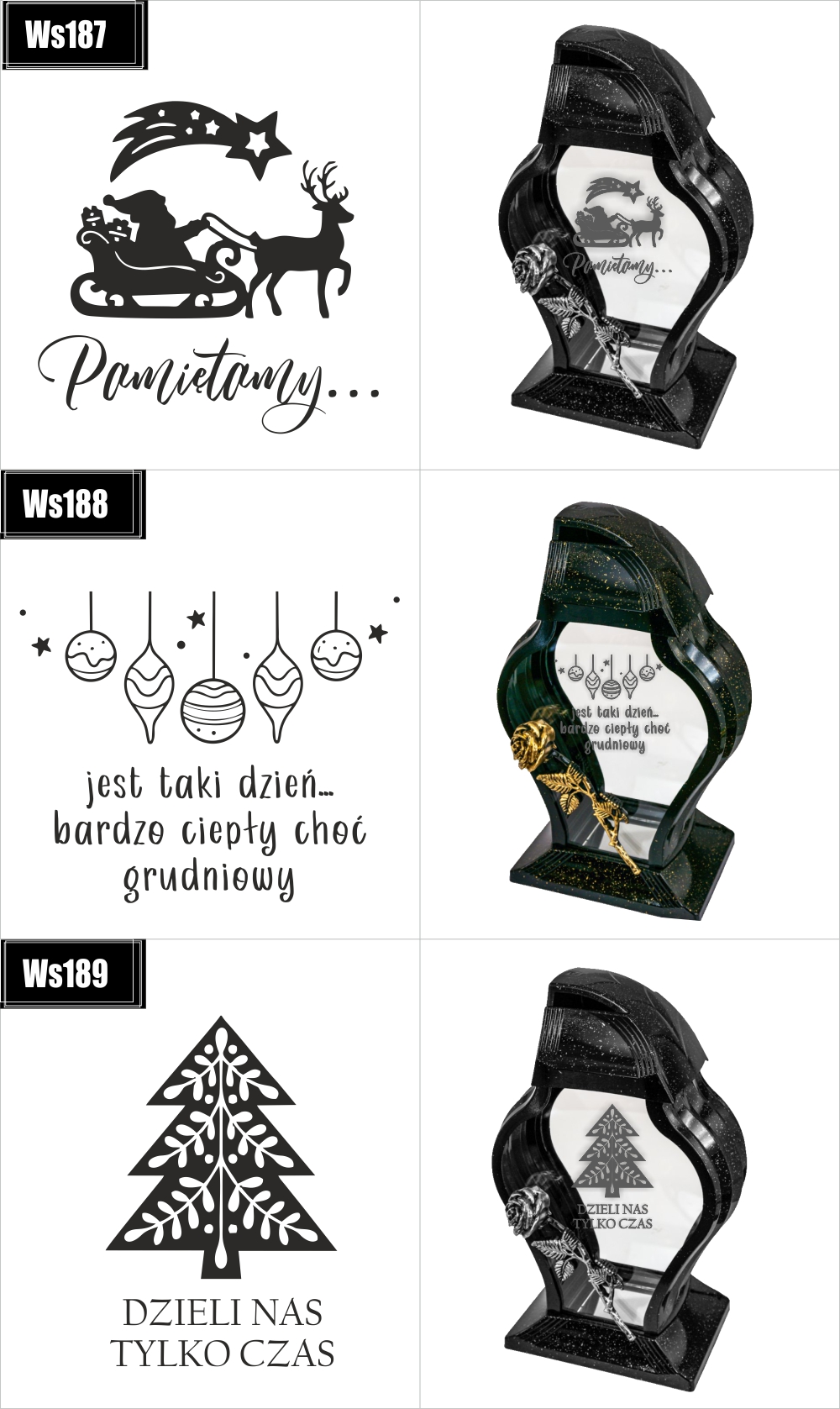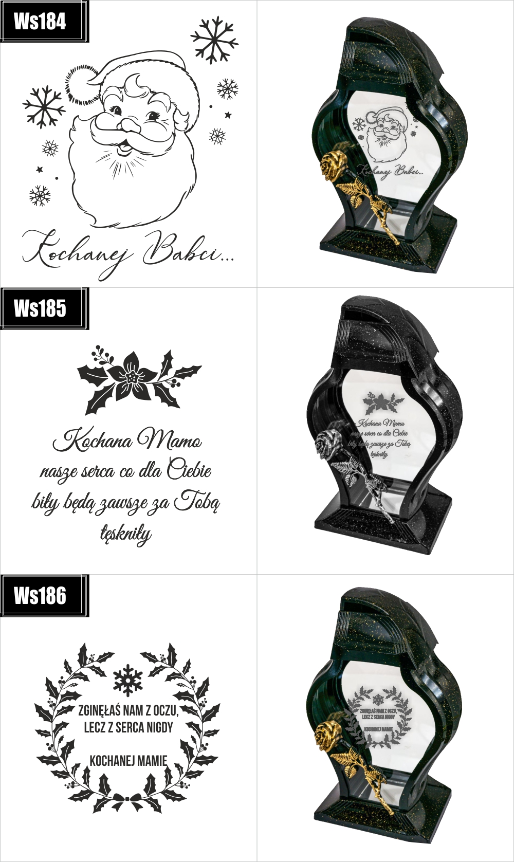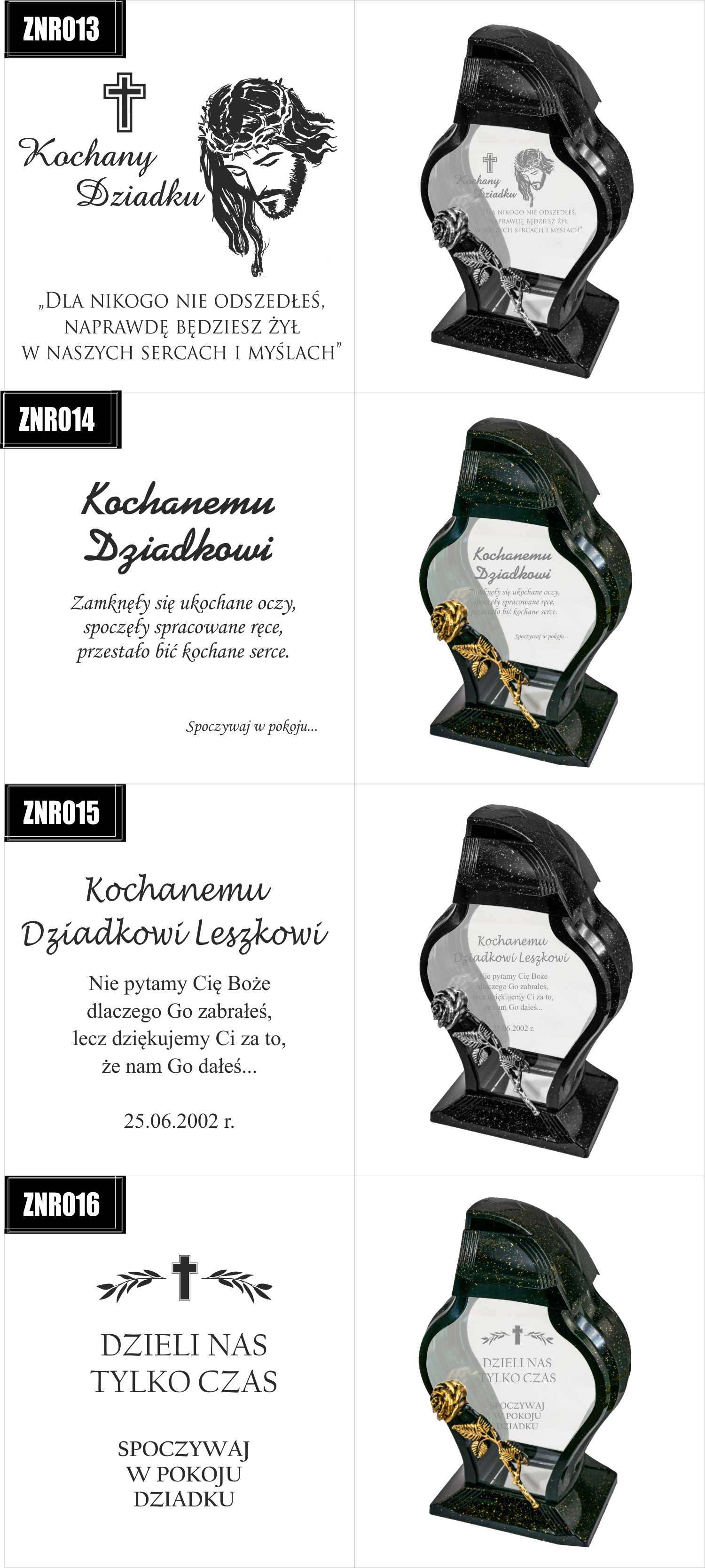 Dostępne wzory graweru na zniczach: