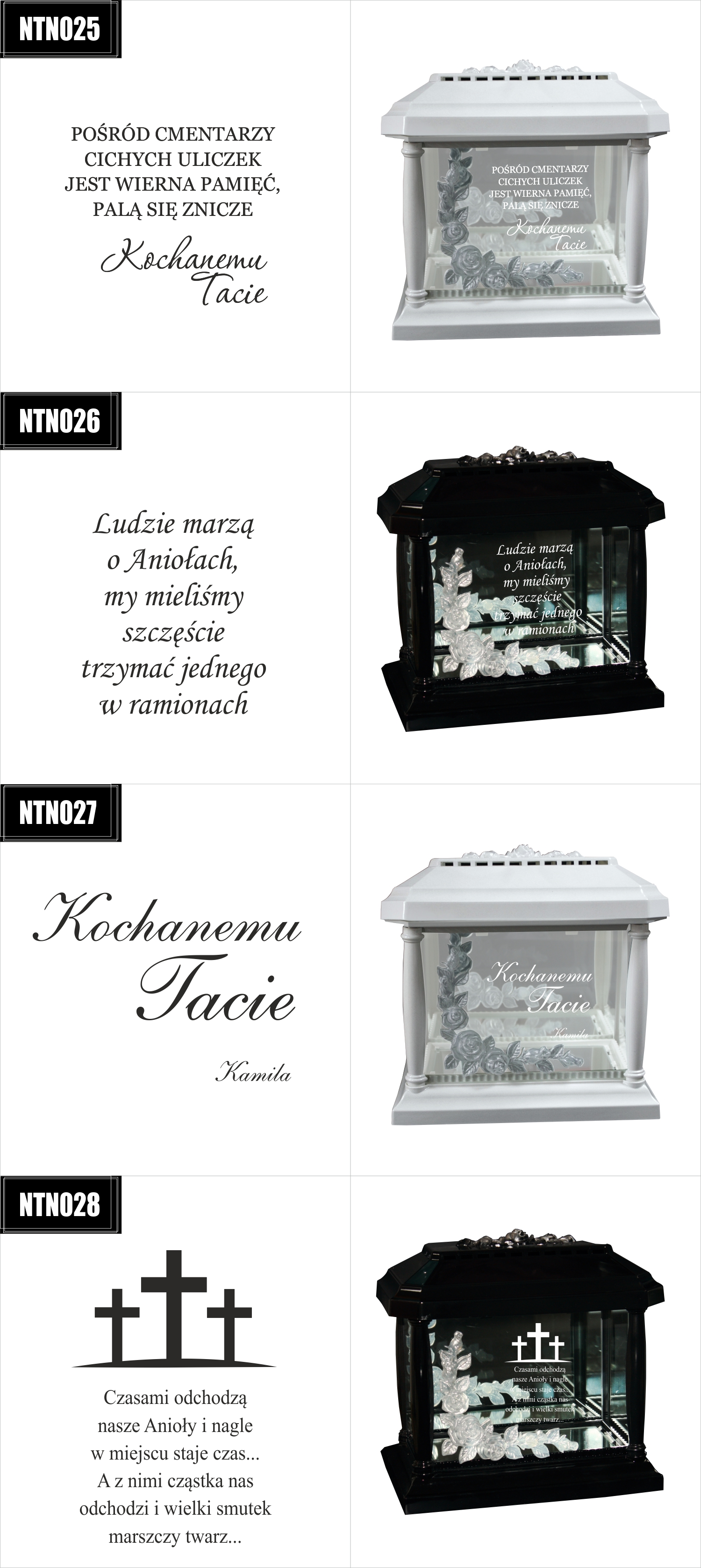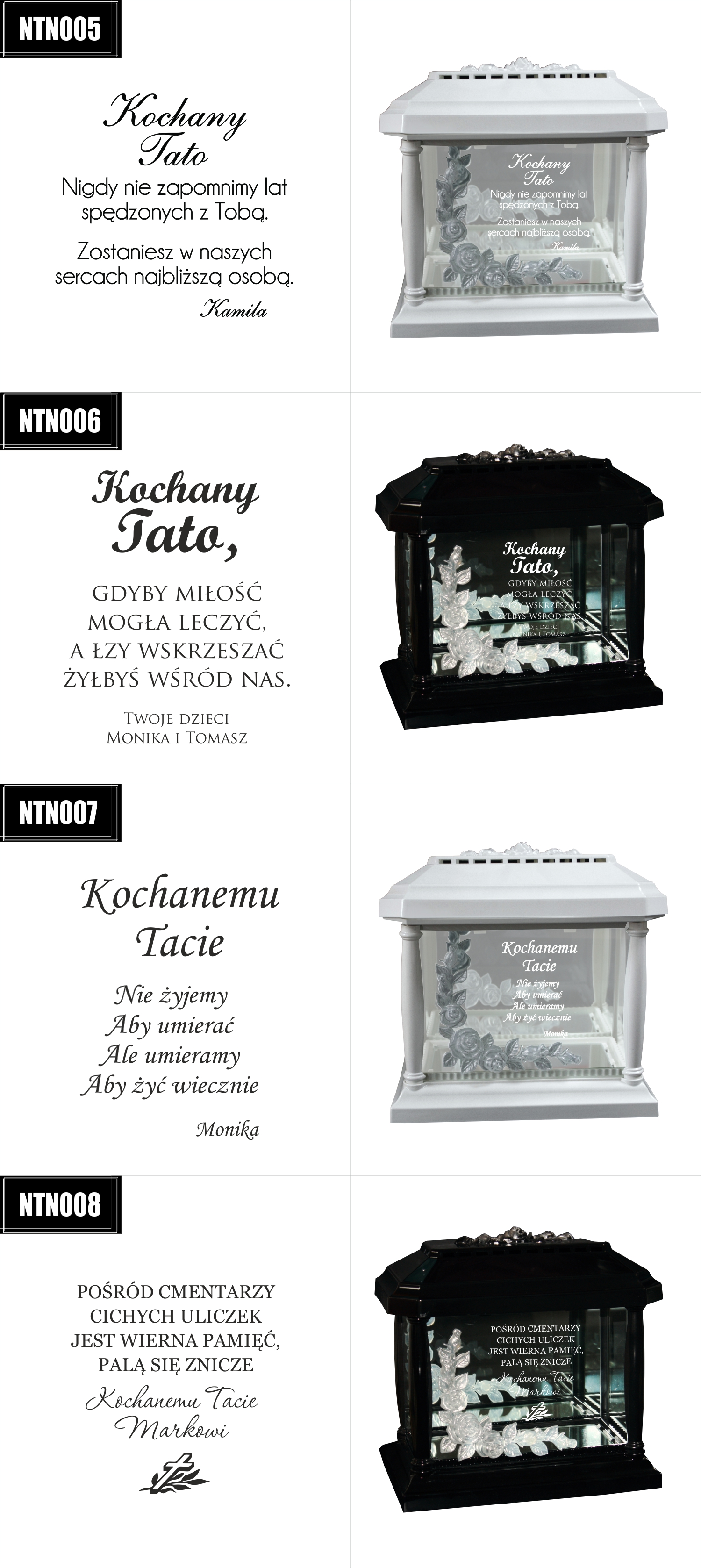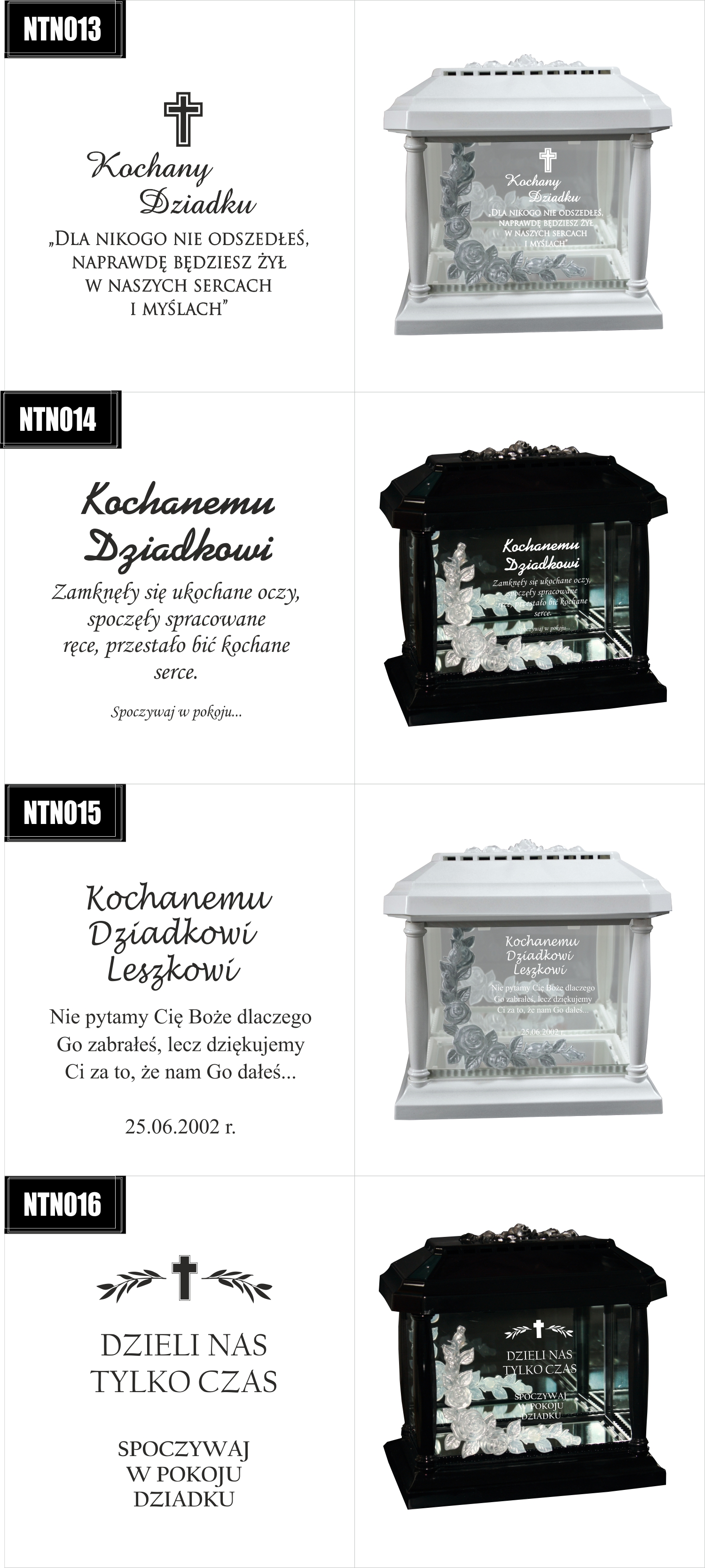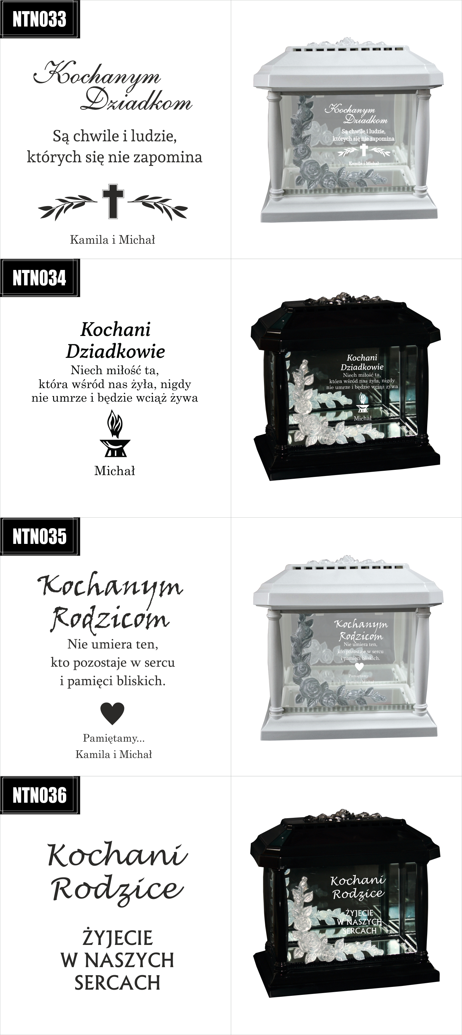 Dostępne wzory graweru na zniczach: