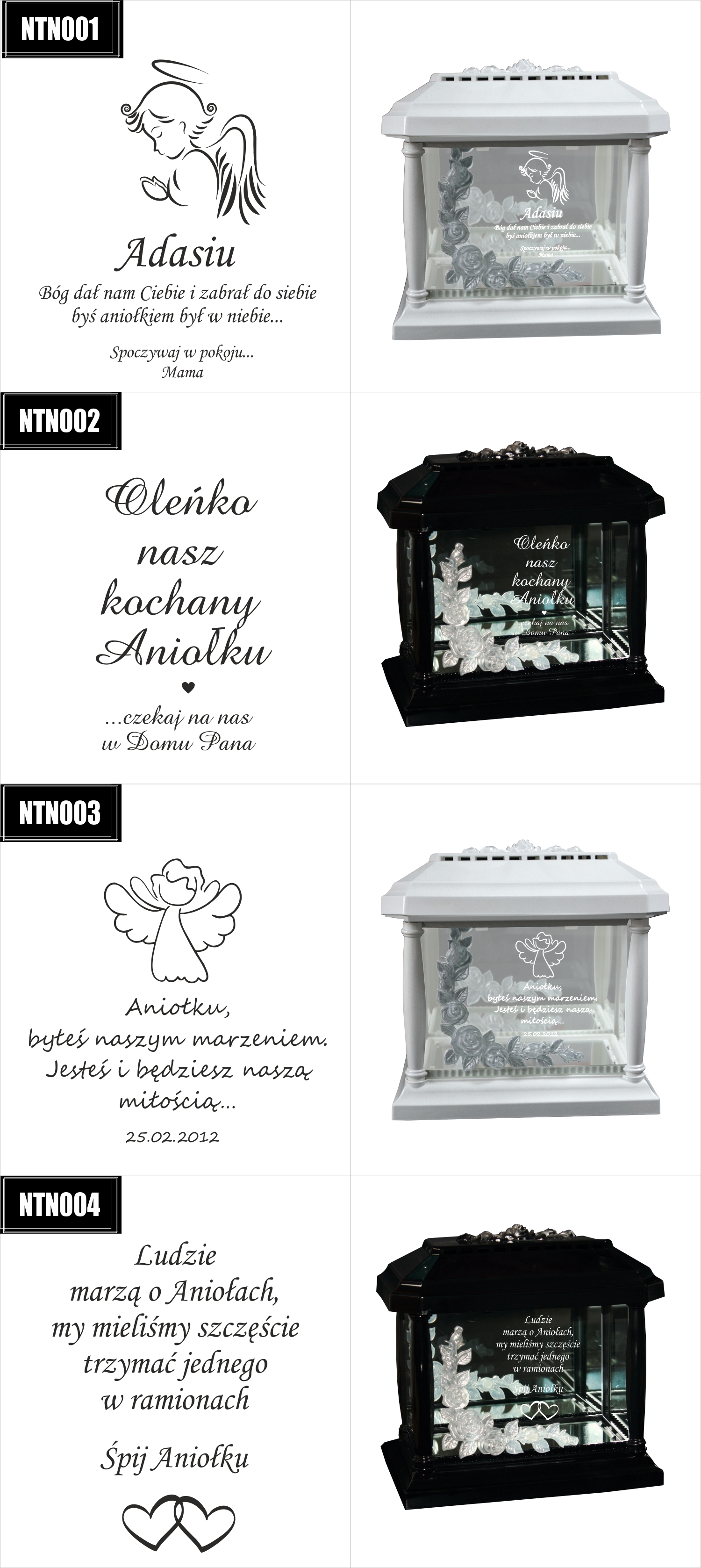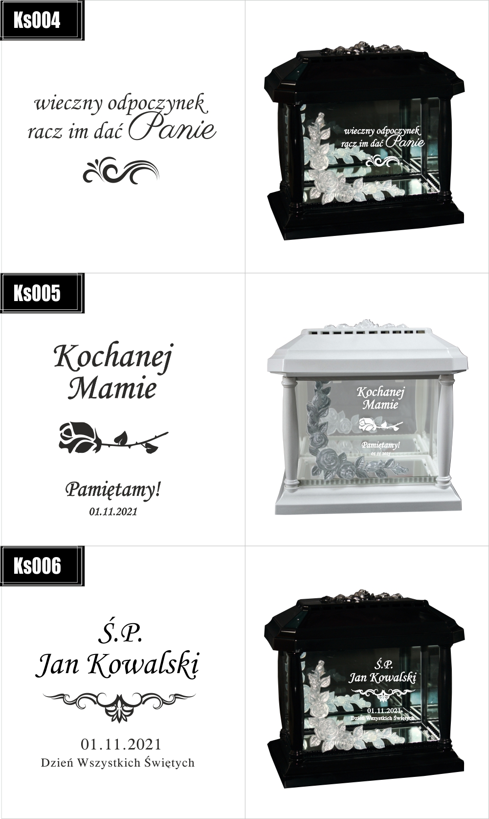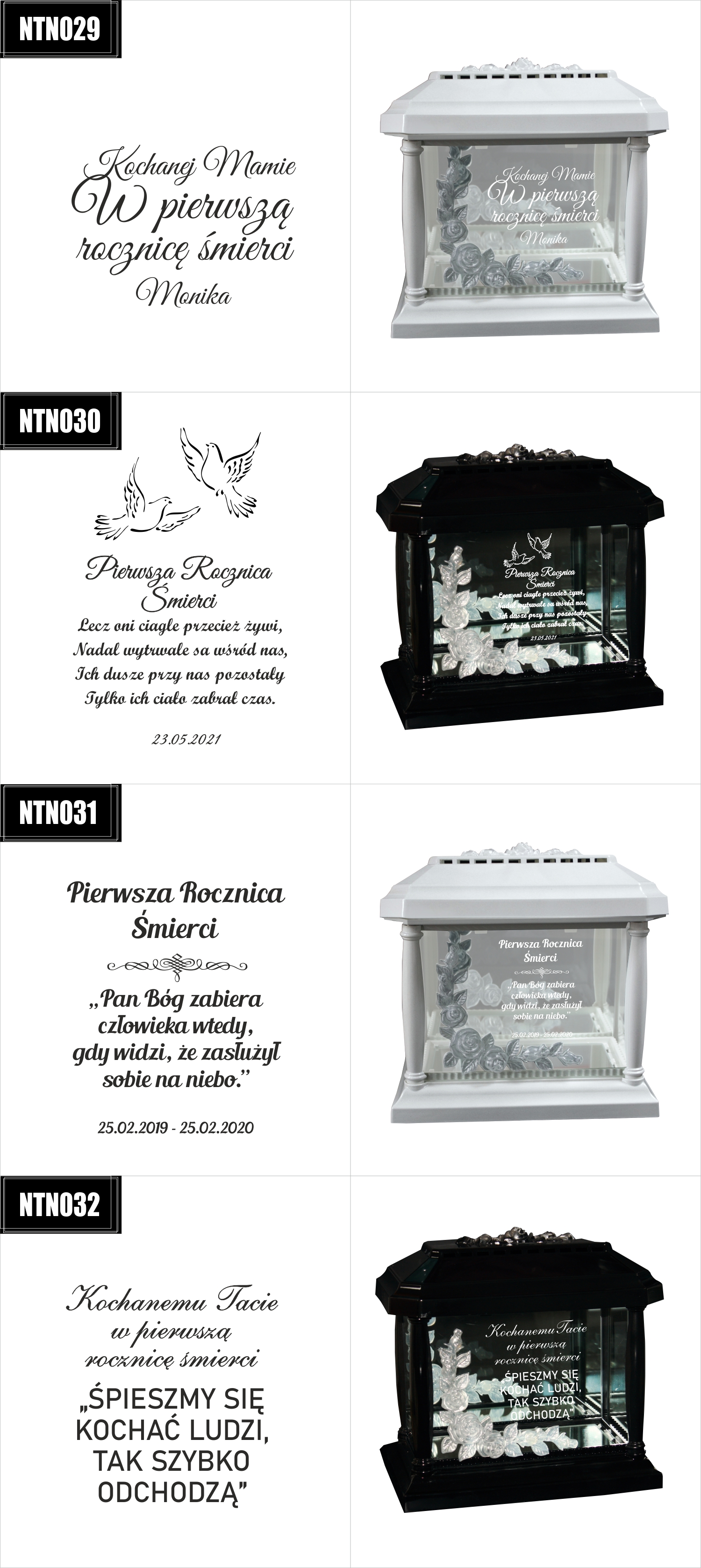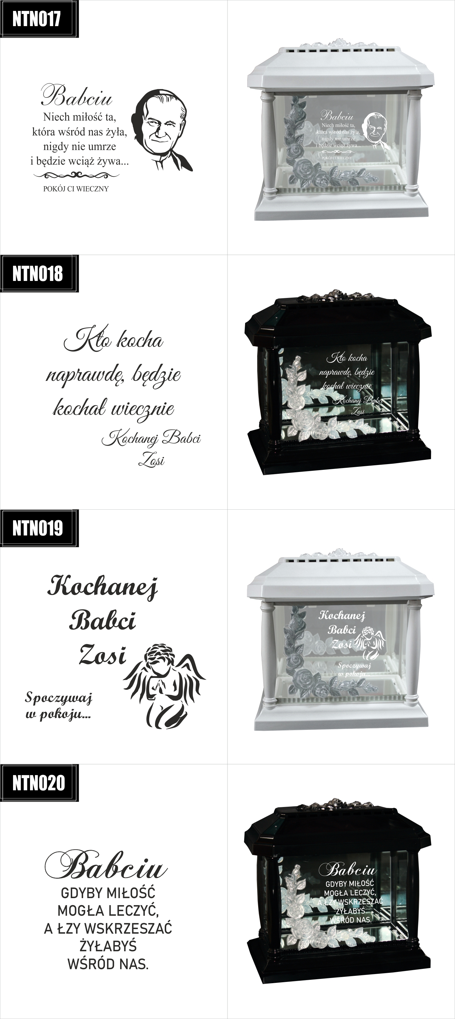 Dostępne wzory graweru na zniczach: