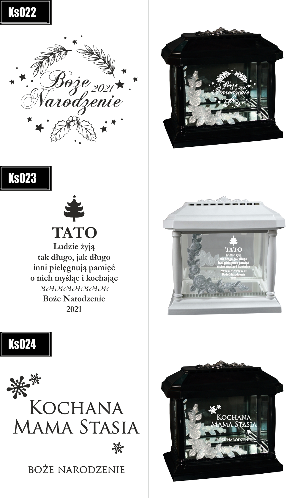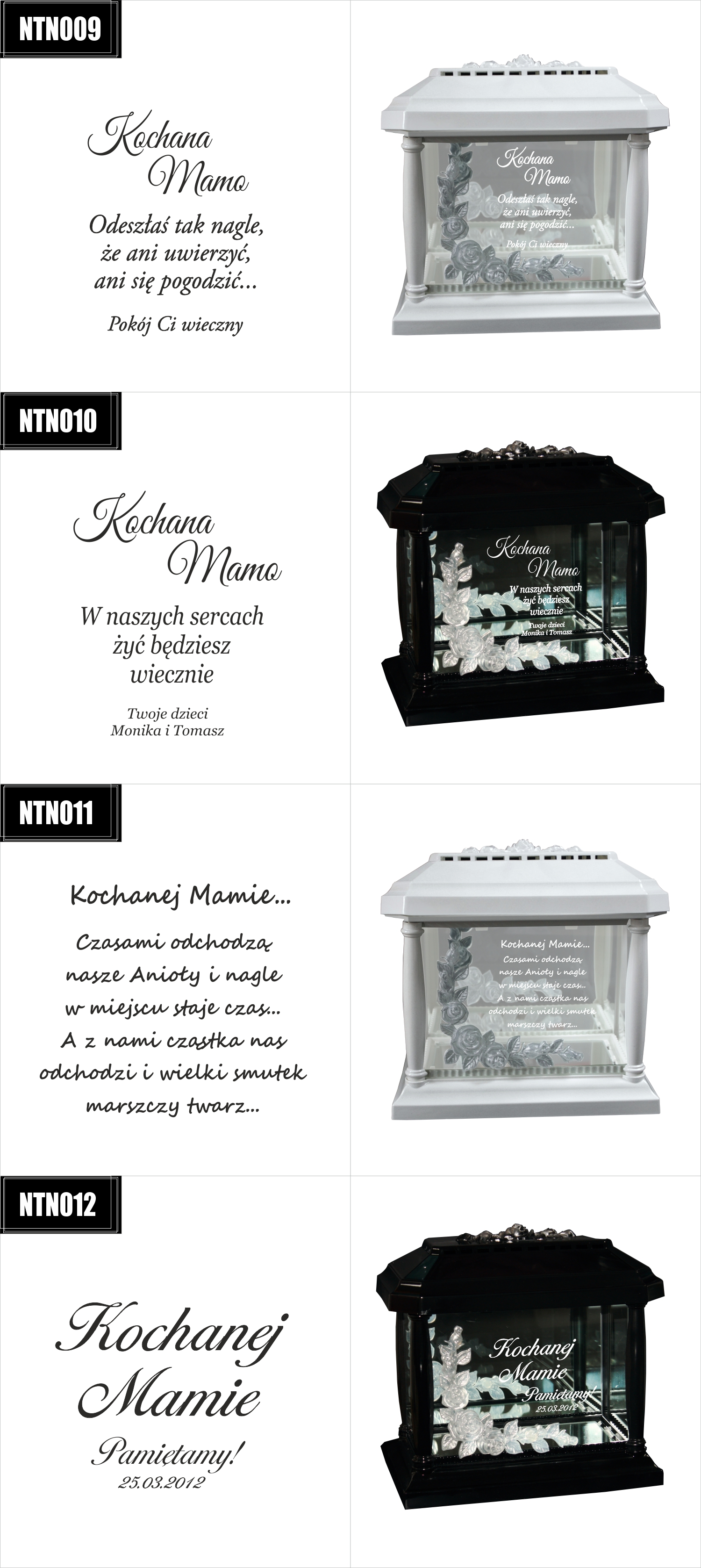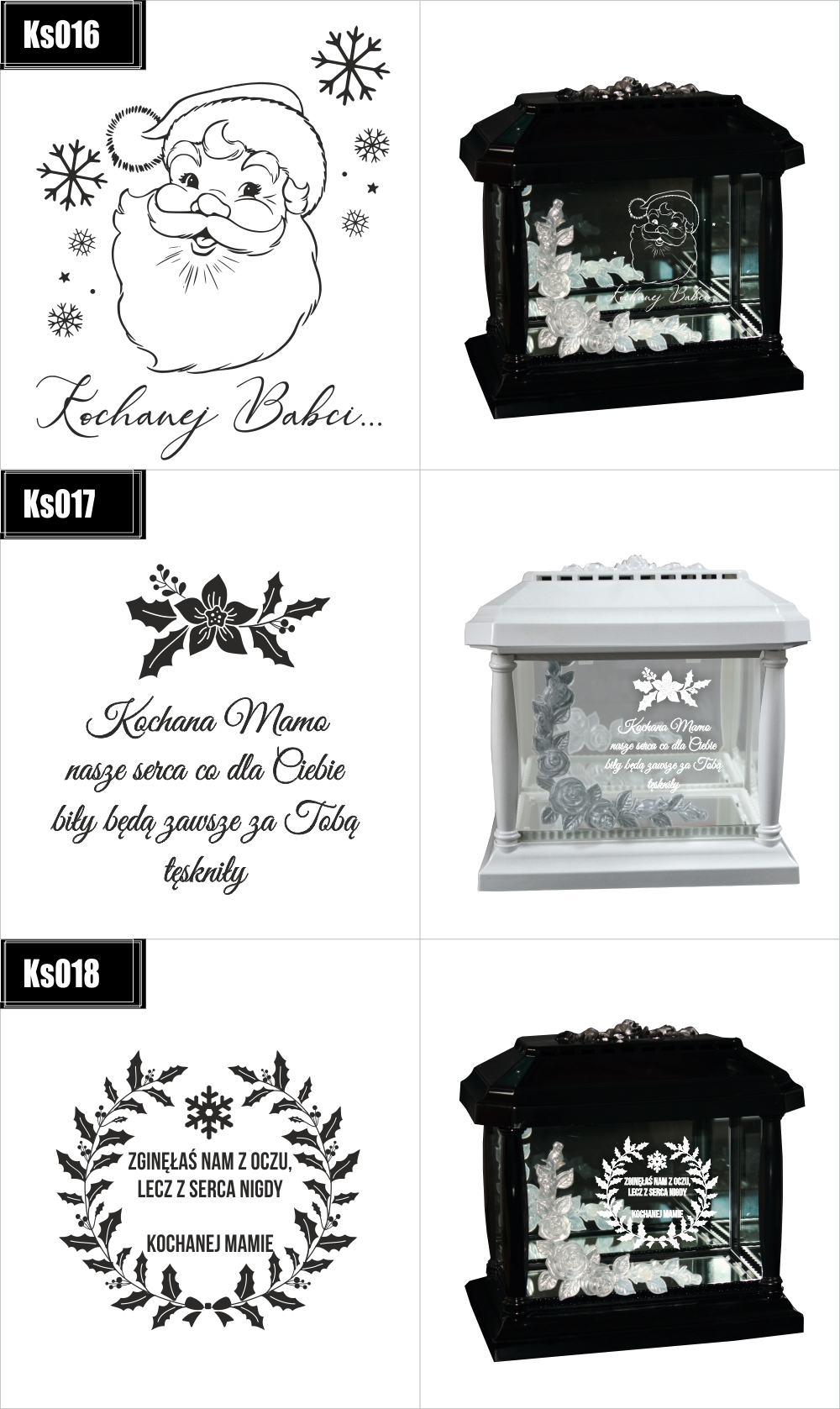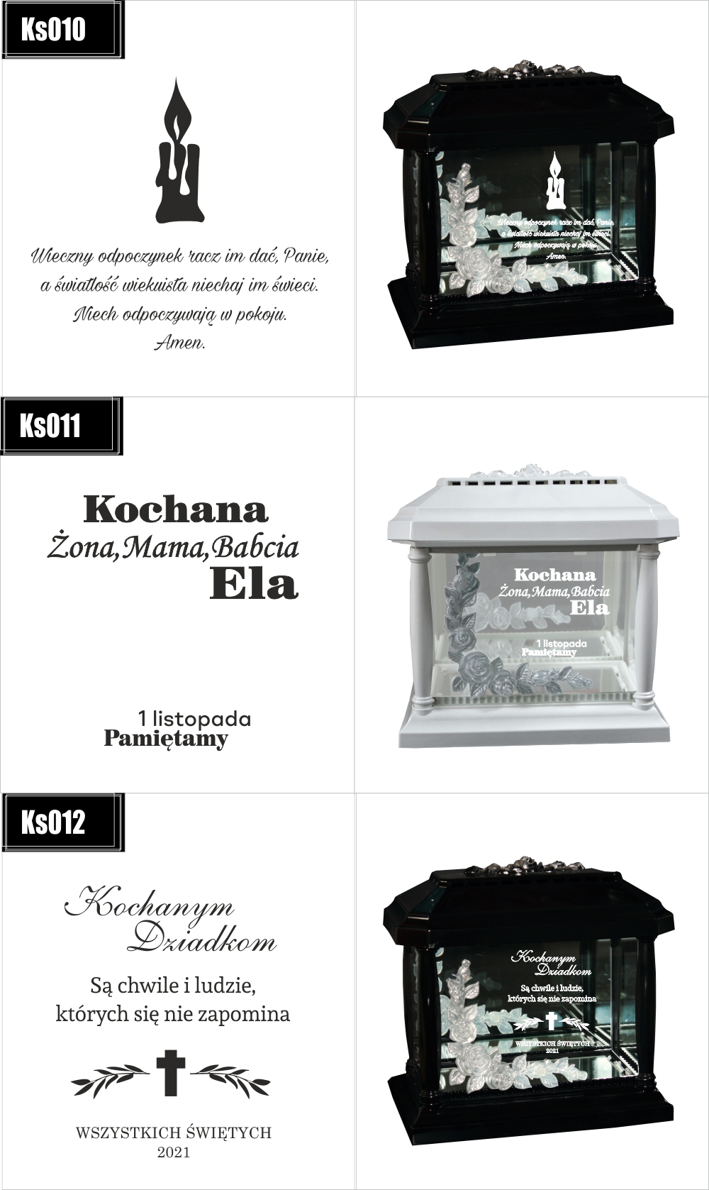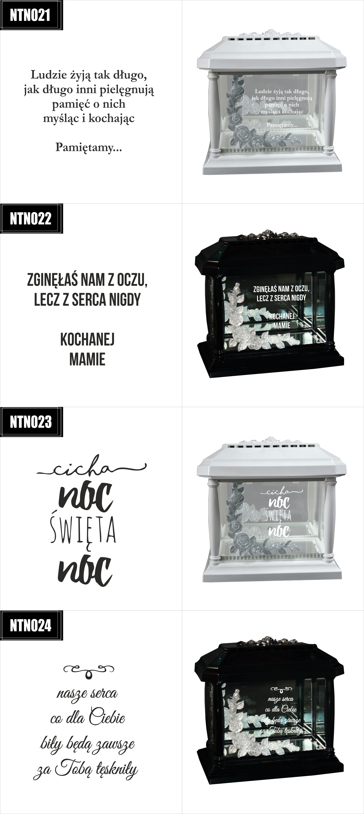 Dostępne wzory graweru na zniczach: