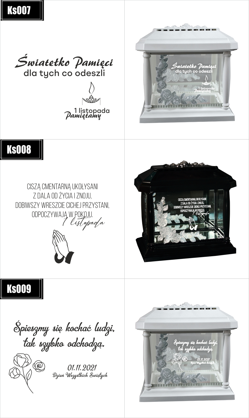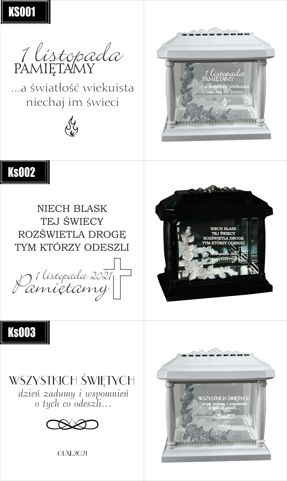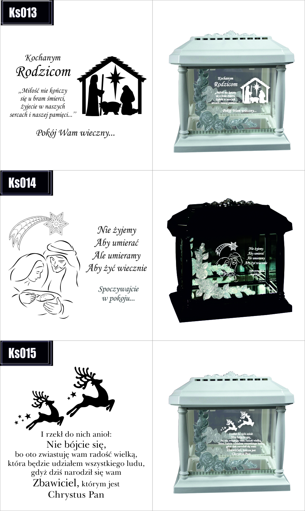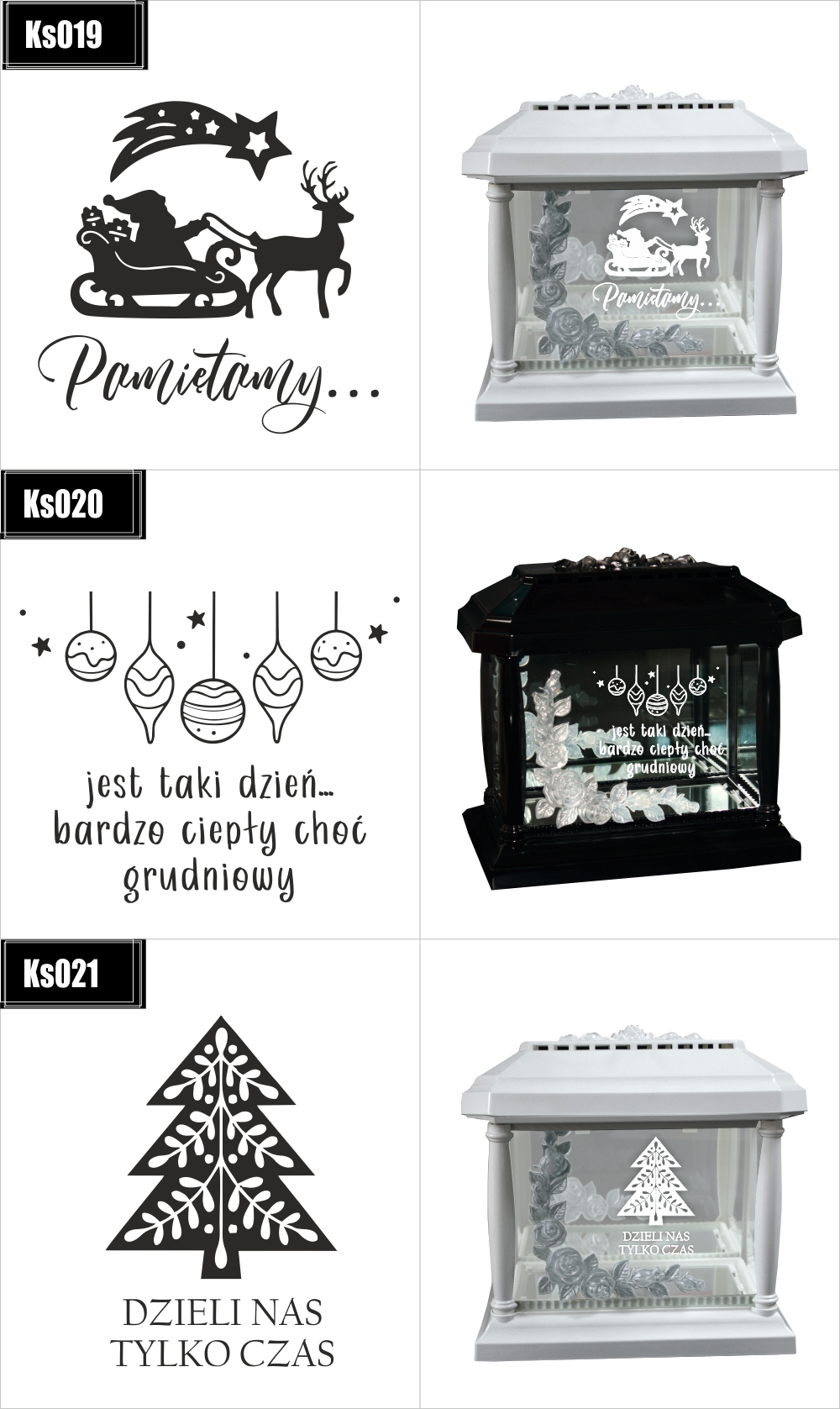 Dostępne wzory graweru na zniczach: