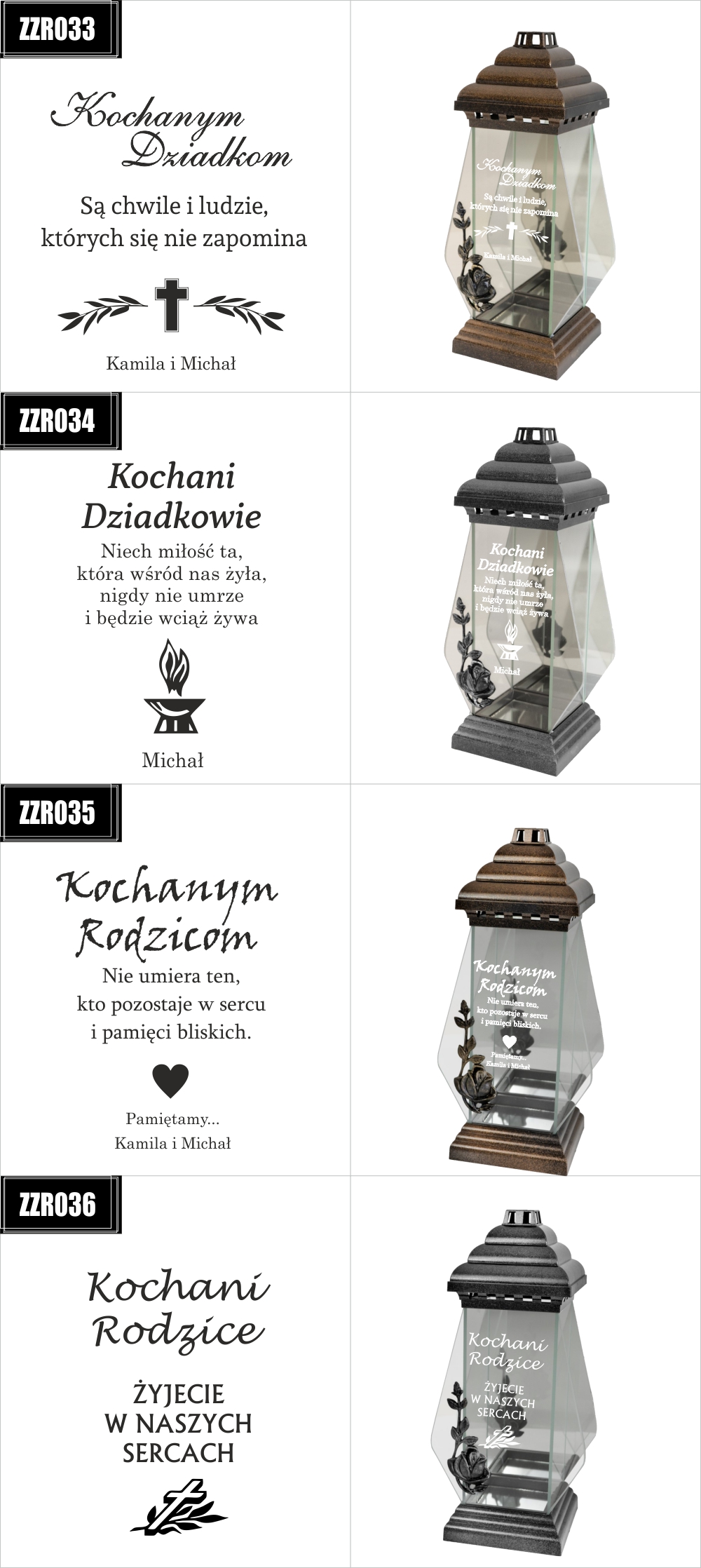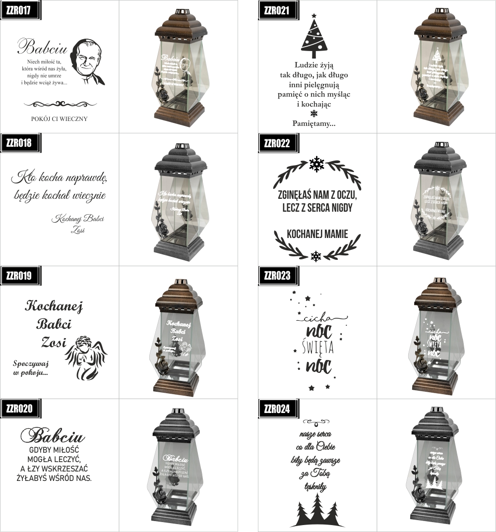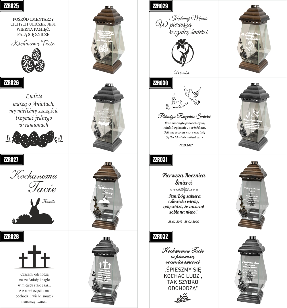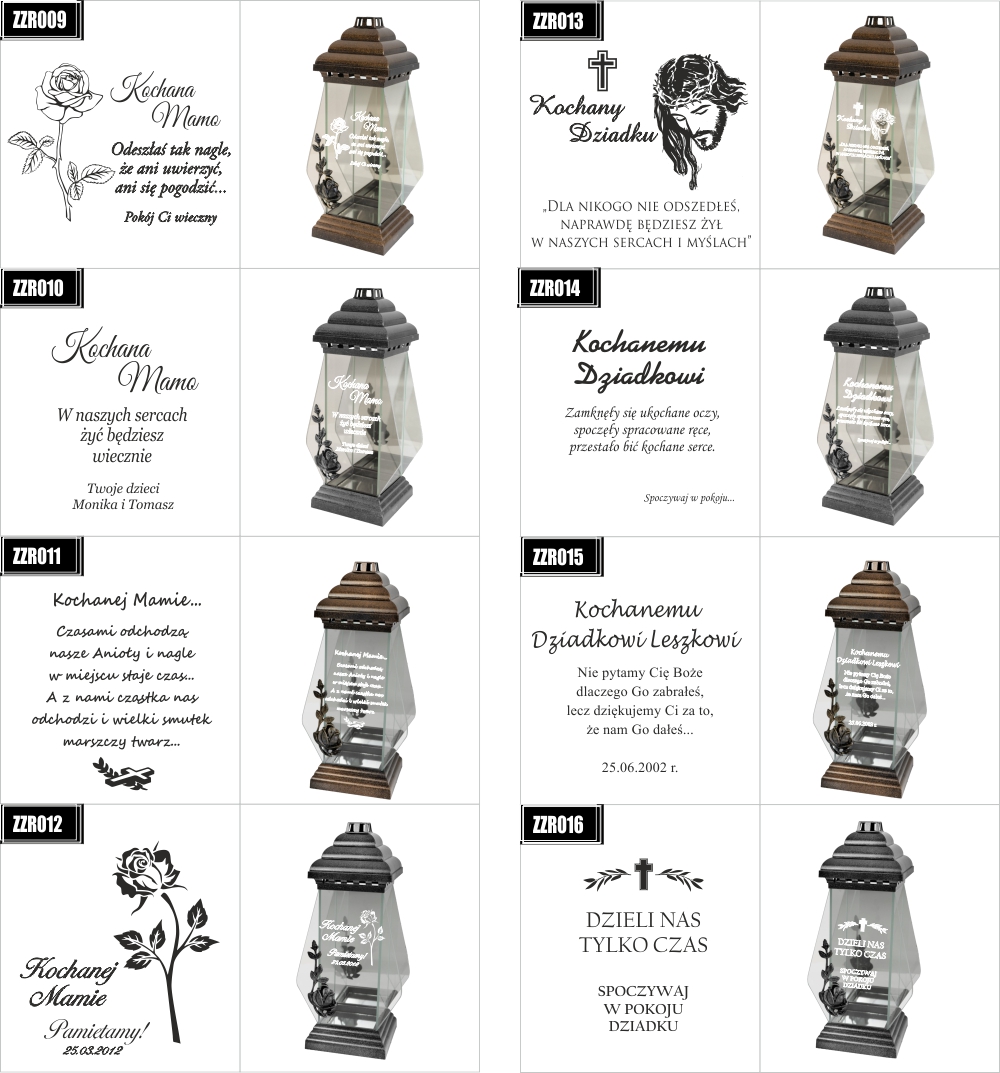 Dostępne wzory graweru na zniczach:
