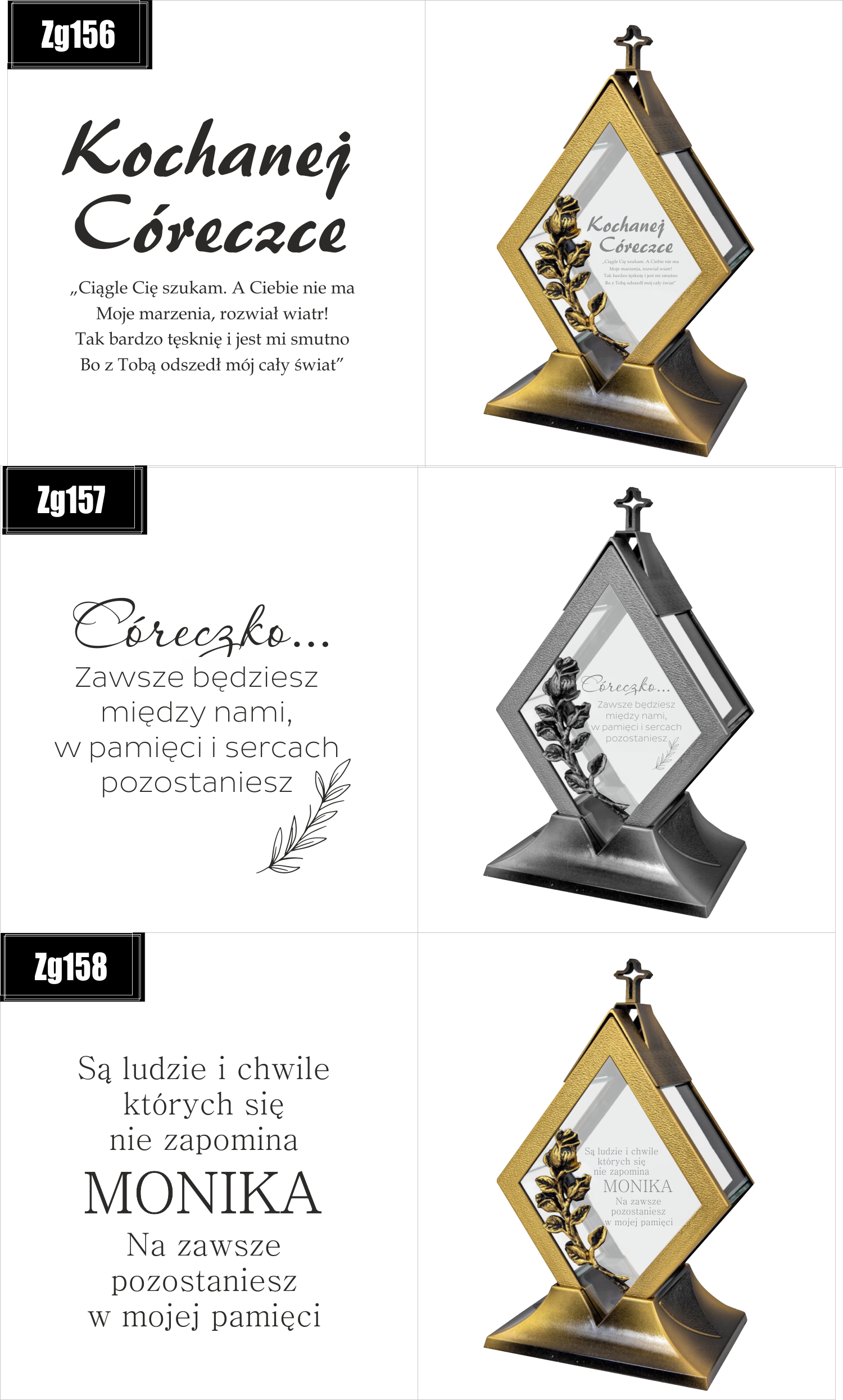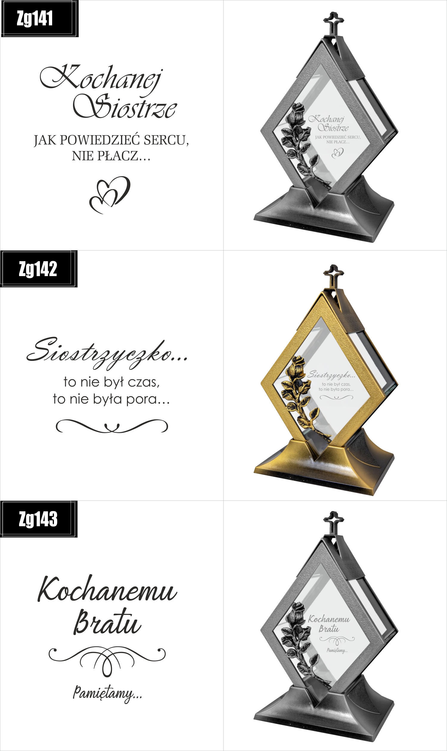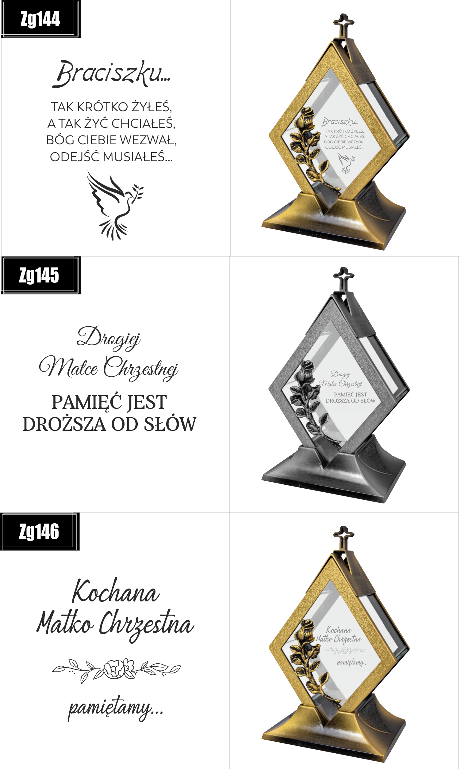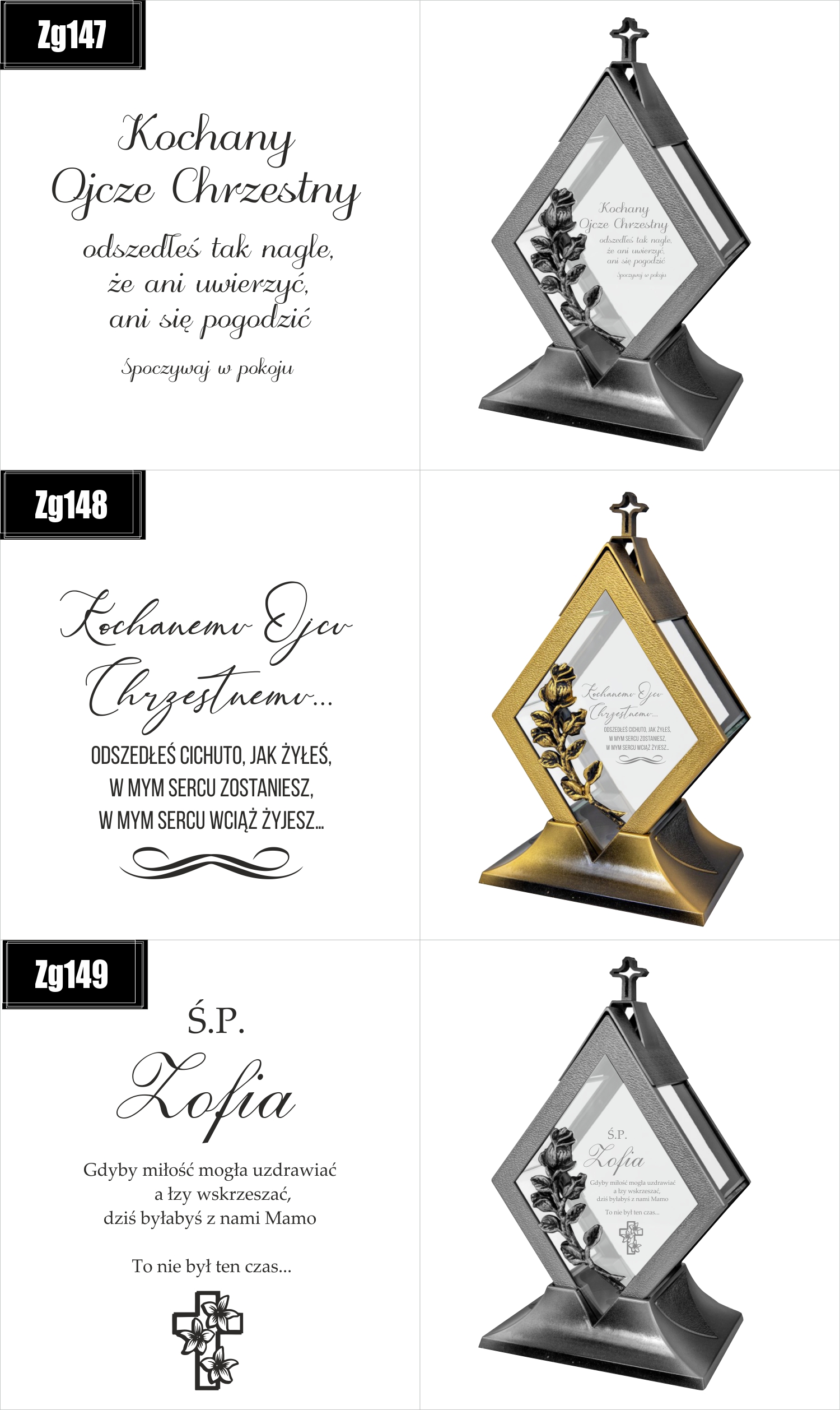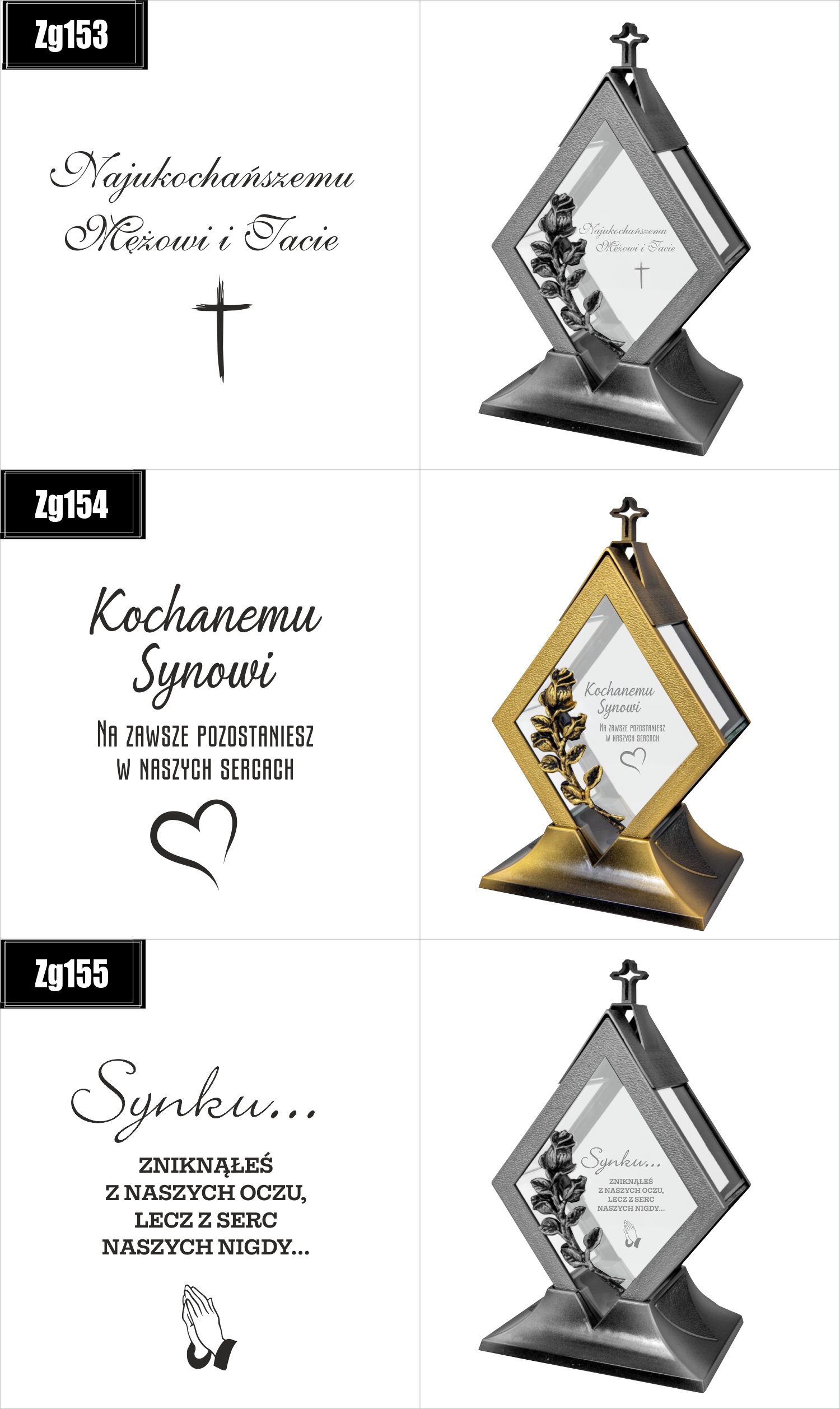 Dostępne wzory graweru na zniczach: