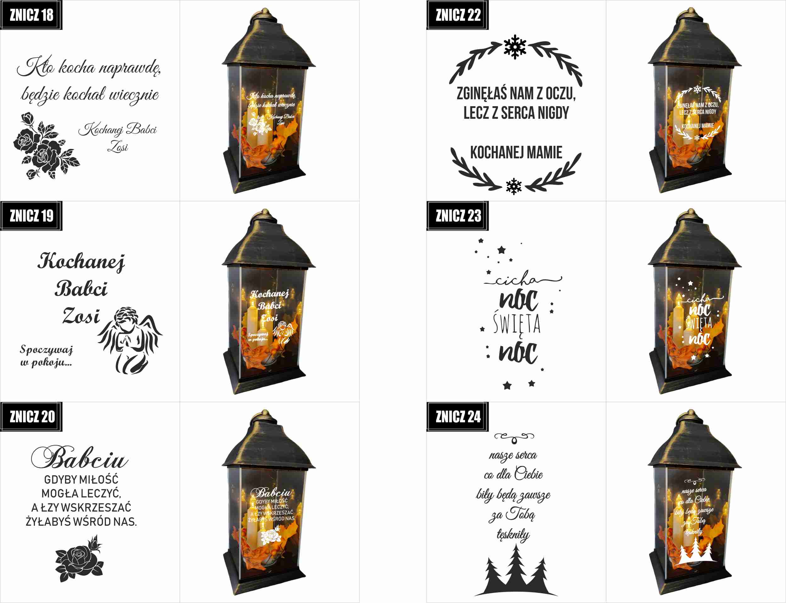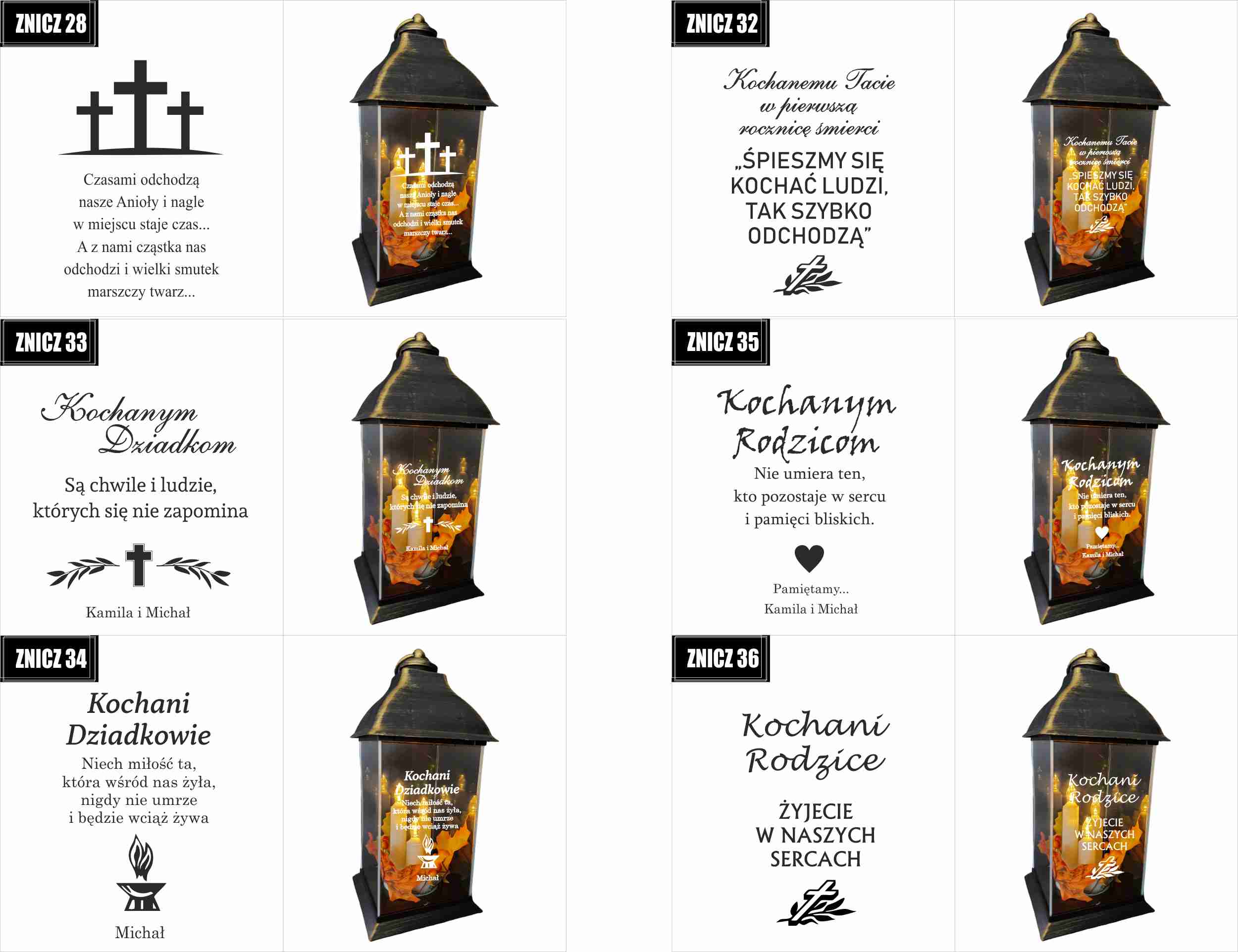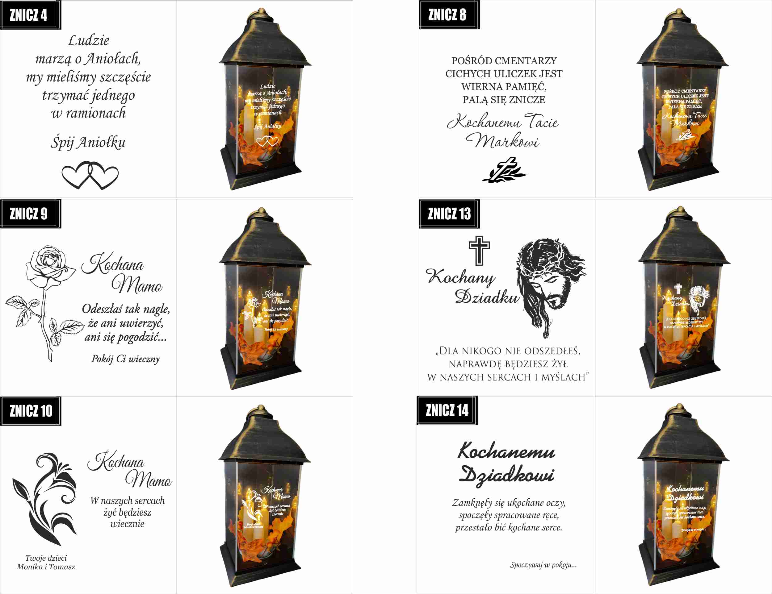 Dostępne wzory graweru na zniczach: