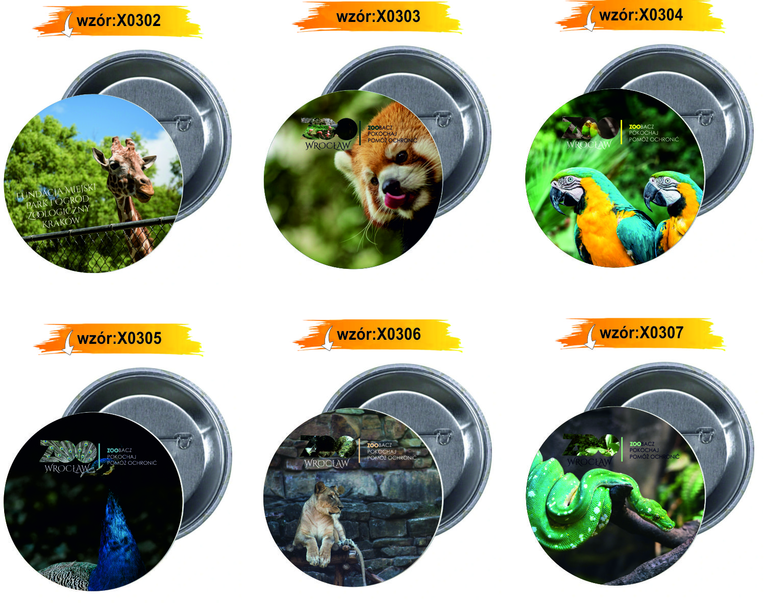Przypinki buttony ZOO ZOOBACZ POKOCHAJ POMÓŻ OCHRONIĆ znaczki badziki z grafiką